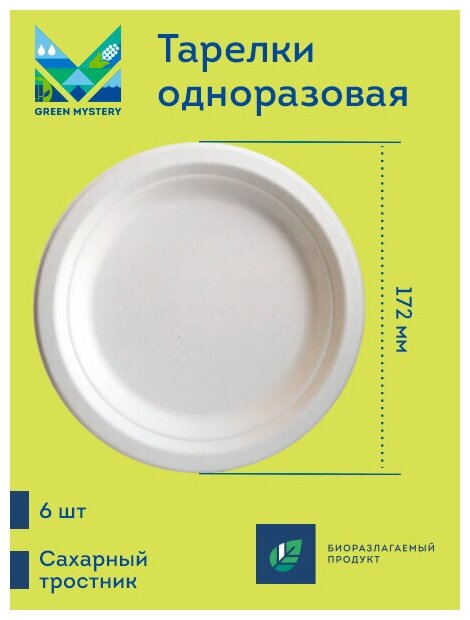 Тарелка одноразовая GREEN MYSTERY биоразлагаемая диаметр 172 мм, 6 шт интересное: