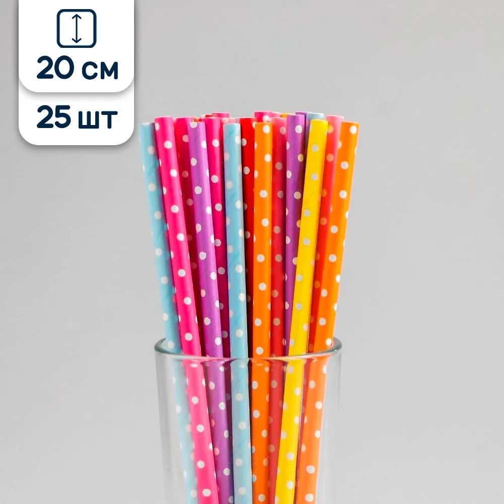 Купить Одноразовые трубочки для коктейлей в горошек, разноцветные, 25 шт.