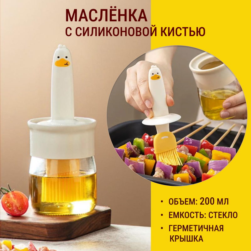 Масленка с кисточкой, цвет серый / Бутылка для масла, 200 мл интересное: