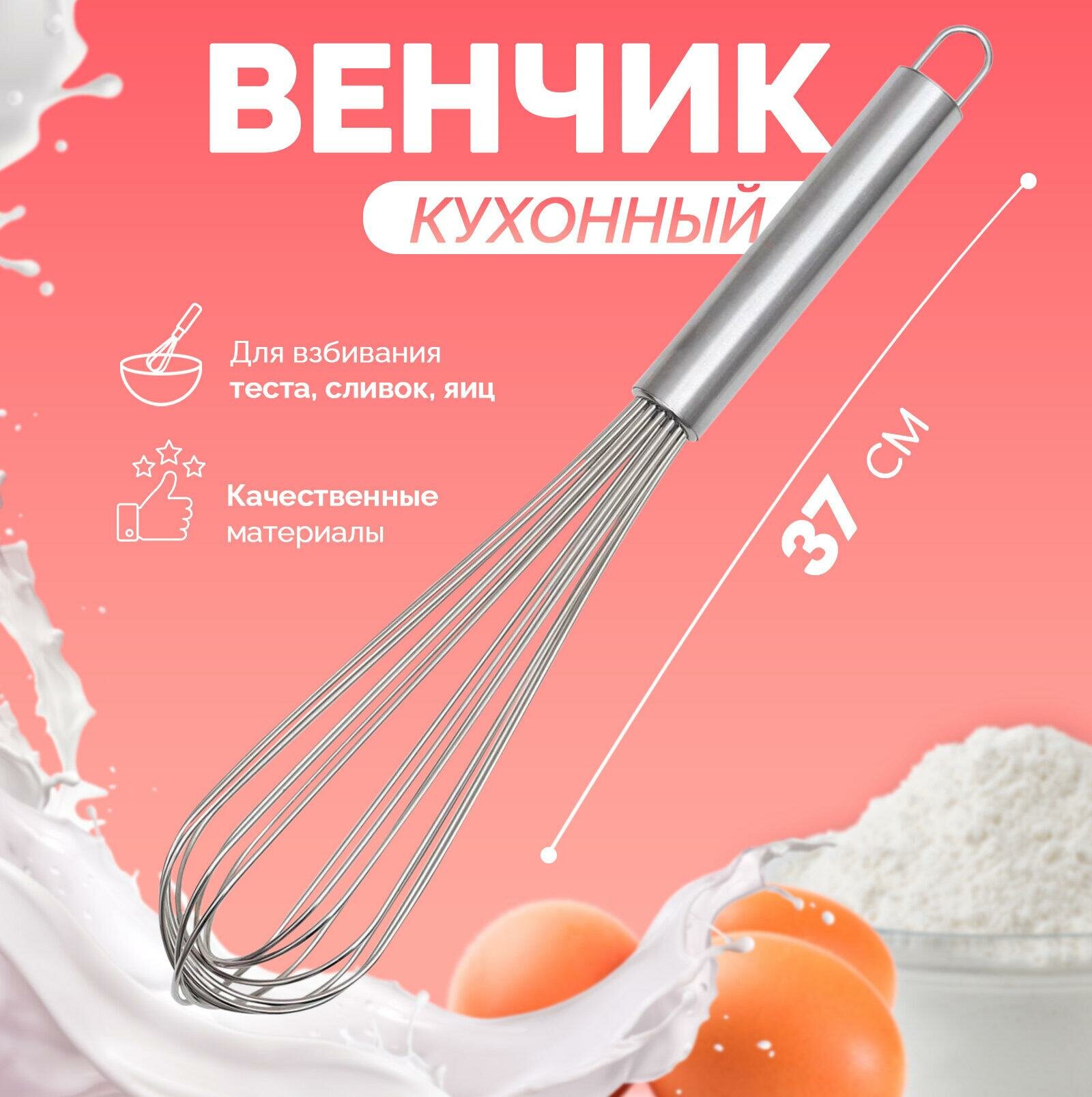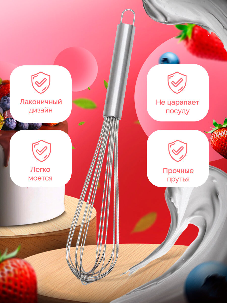 Венчик для взбивания с толстыми струнами KONFINETTA, 37×7 см, цвет серебряный интересное: