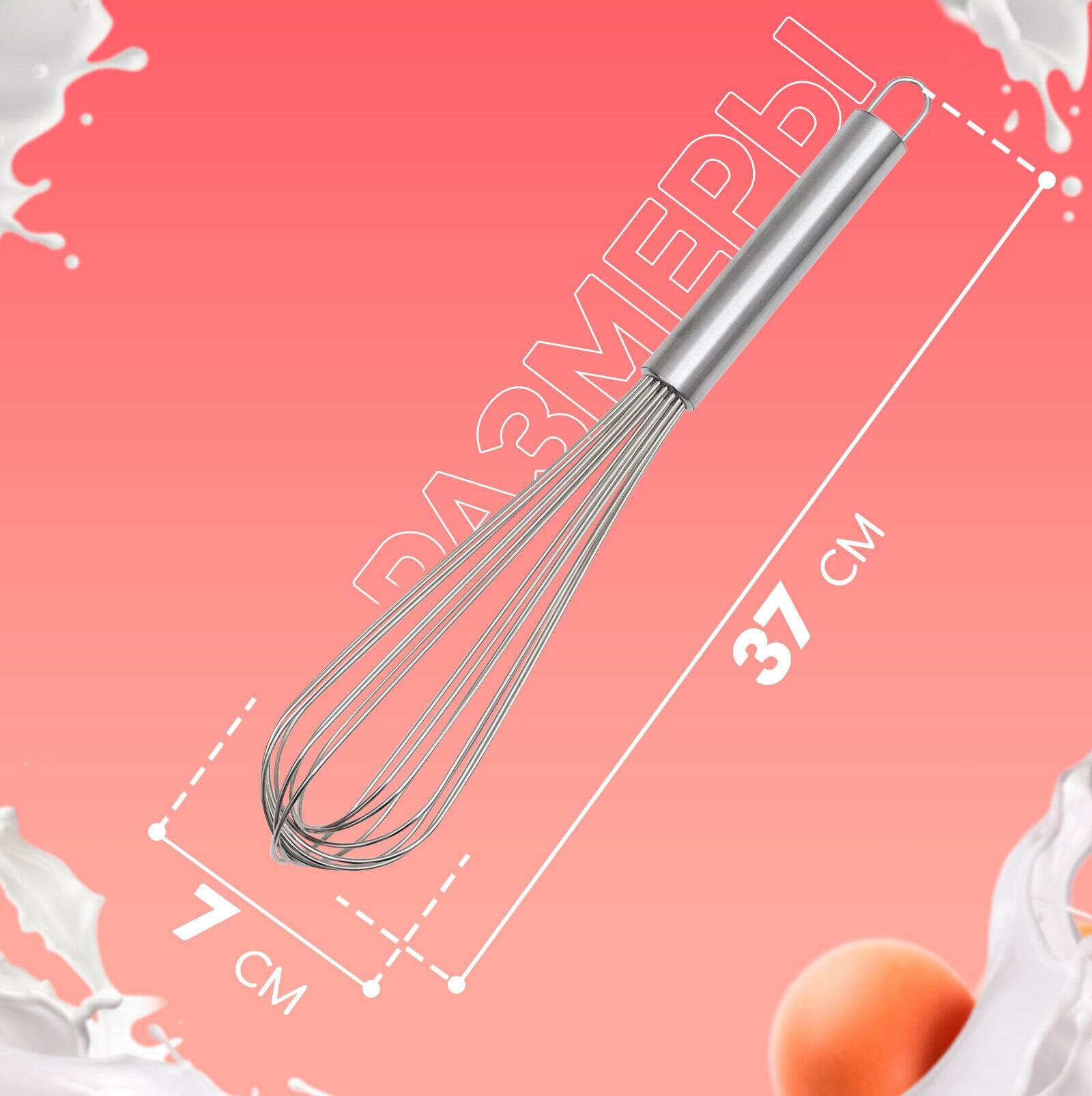 Купить Венчик для взбивания с толстыми струнами KONFINETTA, 37×7 см, цвет серебряный