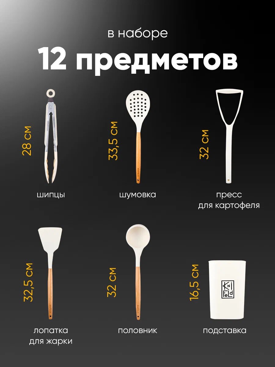 Набор кухонных принадлежностей с подставкой Knifeld, 12 предметов, белый интересное: