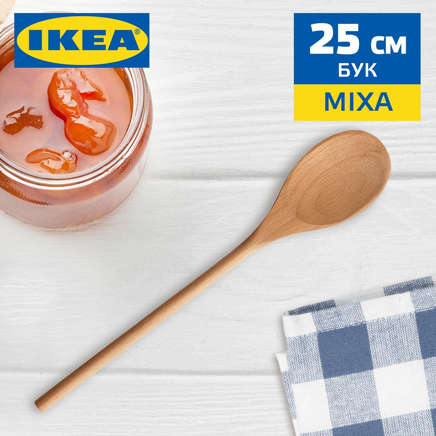 Деревянная ложка поварская IKEA MIXA / икеа микса кулинарная, с длинной ручкой из бука для кухни и приготовления, 25 см интересное: