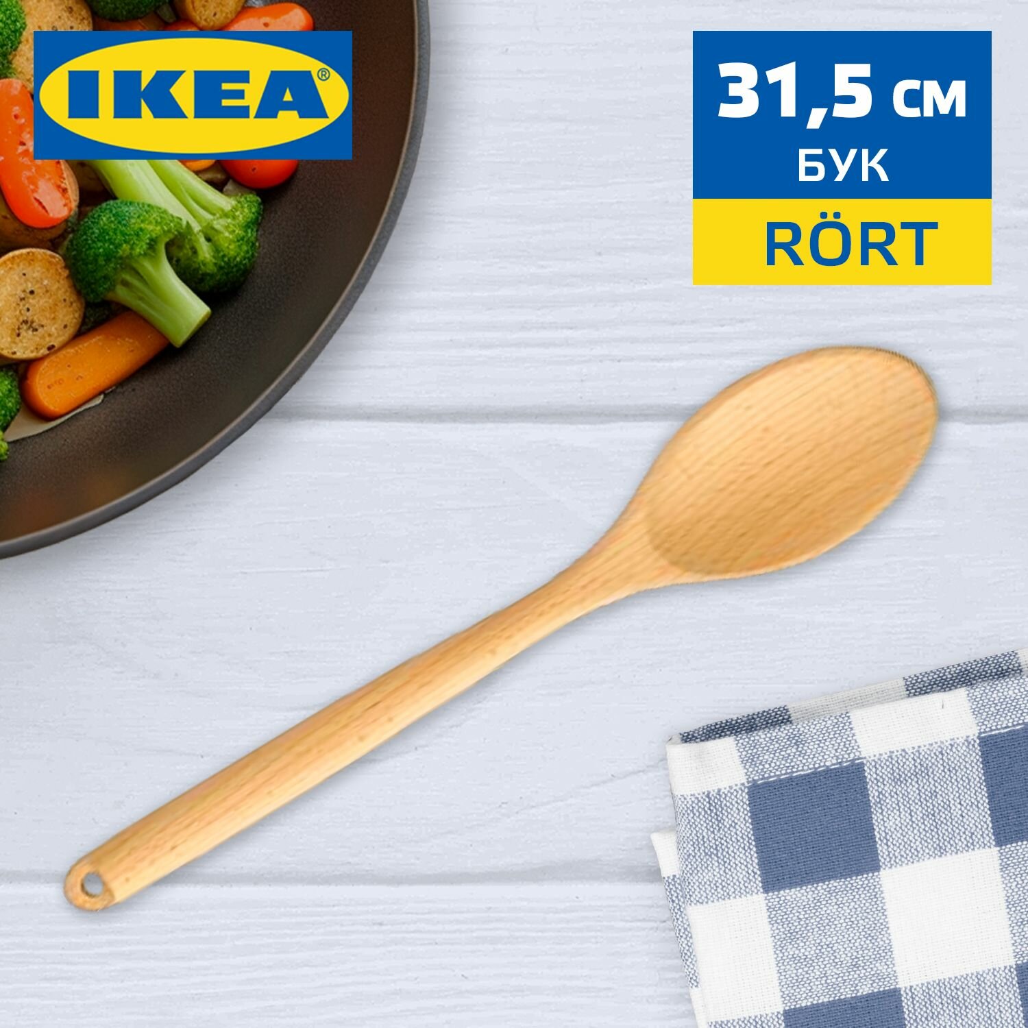 Деревянная ложка поварская IKEA RORT / икеа рёрт кулинарная, с длинной ручкой из бука для кухни и приготовления, 31.5 см интересное: