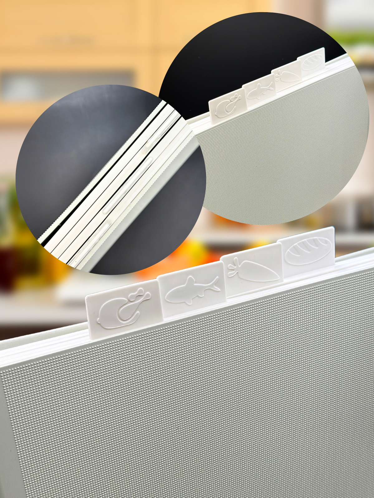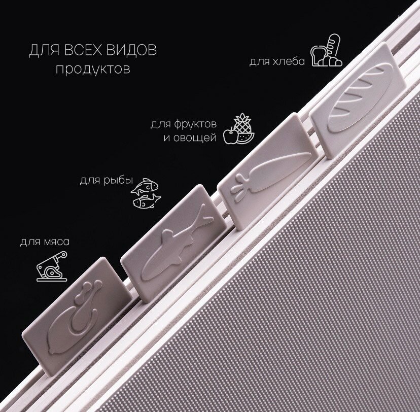 | Особенности | антибактериальное покрытие / антиналипающее покрытие / гибкая / для кухонной мойки / маркировка типа продуктов / мытье в посудомоечной машине / нескользящая / нескользящее основание / с контейнером |