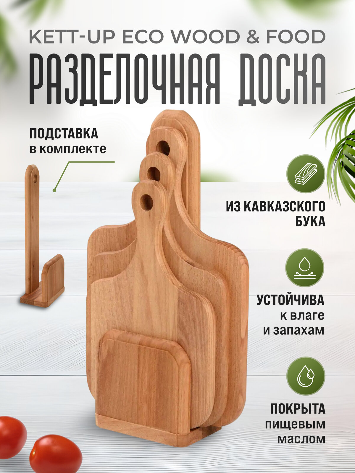 Набор разделочных (3шт) досок KETT-UP ECO WOOD & FOOD деревянных классические на вертикальной подставке интересное: