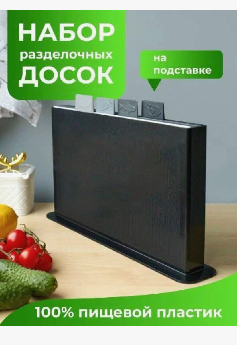Набор разделочных досок 4 штуки, 32*20см, цвет черный,пластик, прямоугольные интересное: