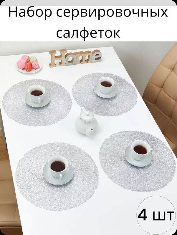 Набор круглых сервировочных салфеток / Плейсматы круглые/ Салфетка на стол/ Постановочная салфетка. Комплект из 4 штук