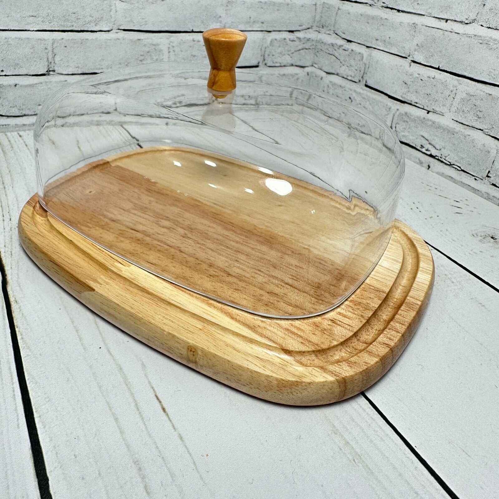 Купить Маслёнка на деревянной подставке , контейнер для сливочного масла и сыра с крышкой, бамбук