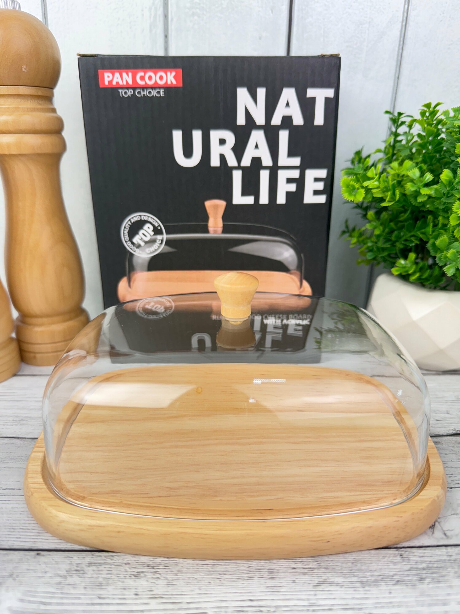 Маслёнка на деревянной подставке , контейнер для сливочного масла и сыра с крышкой, бамбук интересное: