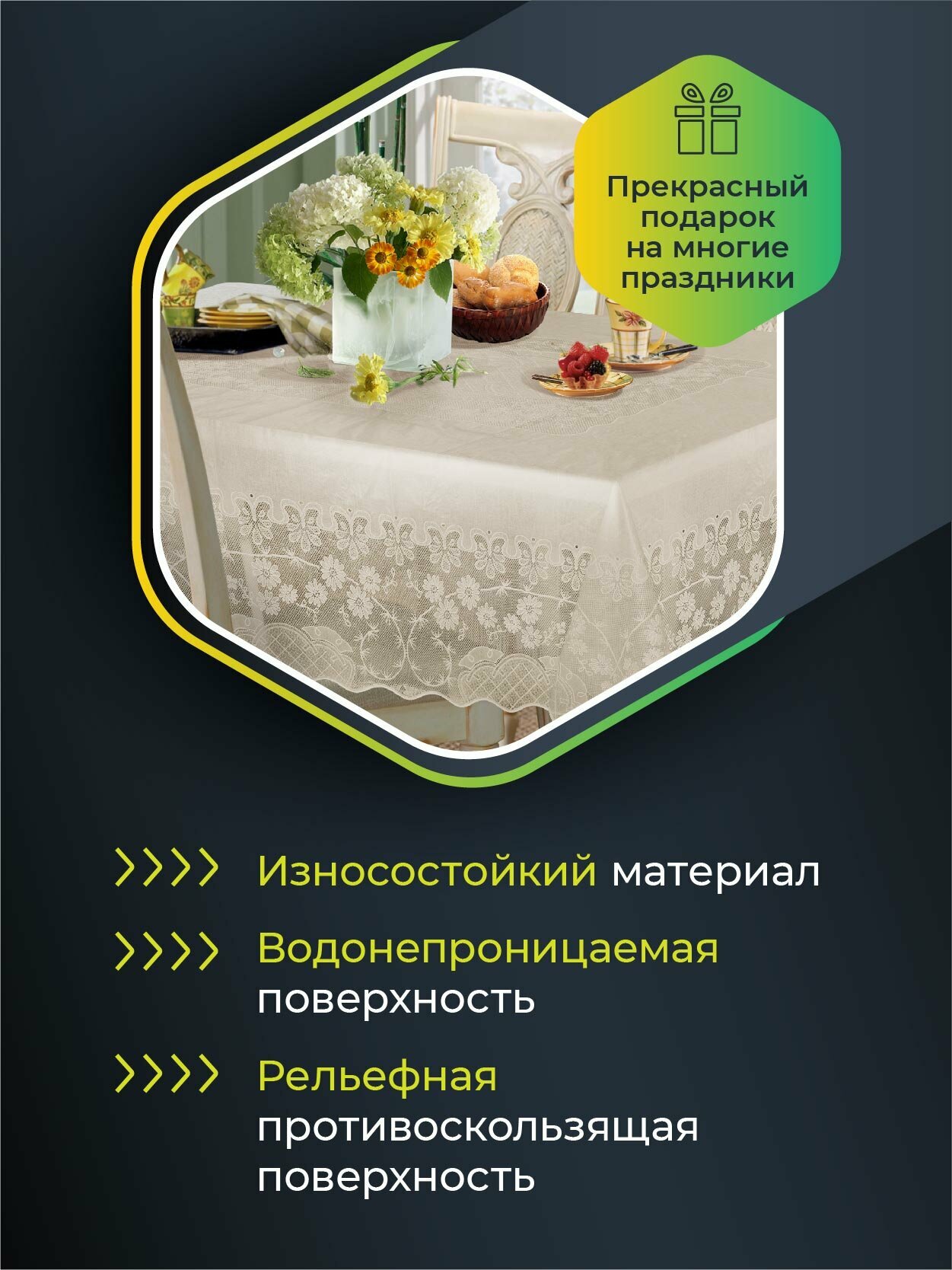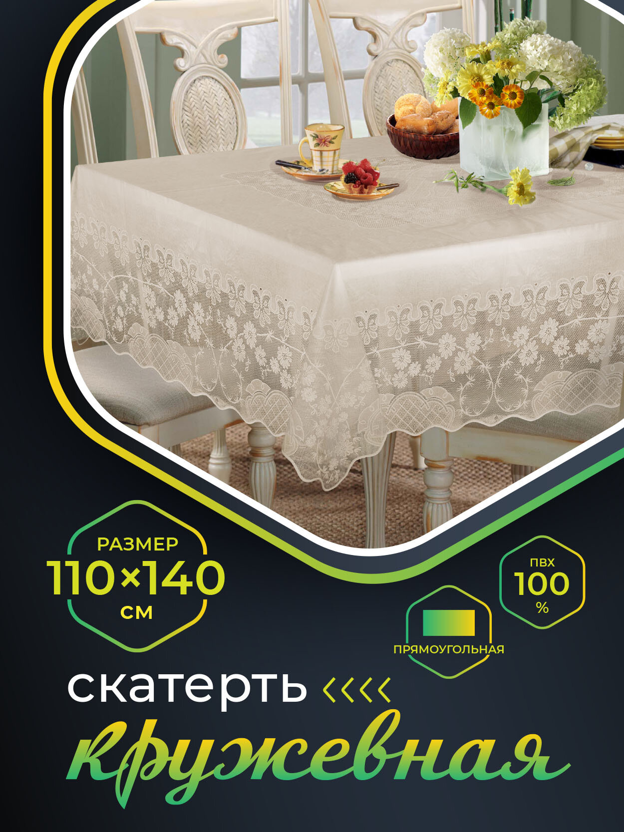 Скатерть NIKLEN кружевная 110х140см, 100% ПВХ , бежевая интересное: