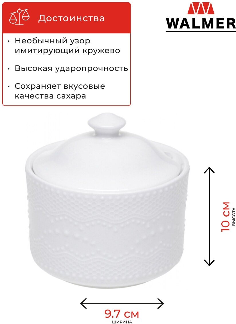 Купить Сахарница фарфоровая с крышкой Walmer Vivien, 280 мл, цвет белый