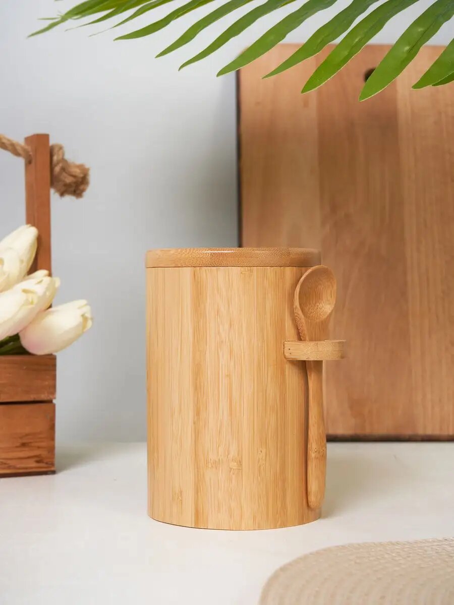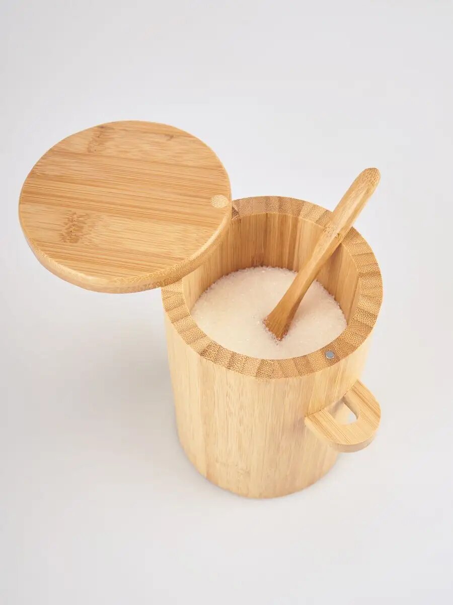 Сахарница с крышкой и ложкой, деревянная интересное: