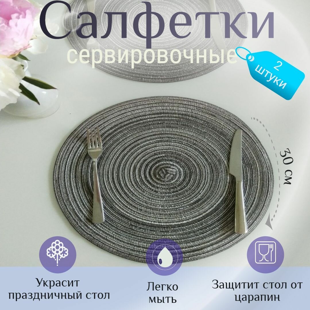 СохранитьСалфетки сервировочные круглые на стол 2 шт, диаметр 30 см. Темный металлик. Сервировочные салфетки тканевые, плейсматы интересное: