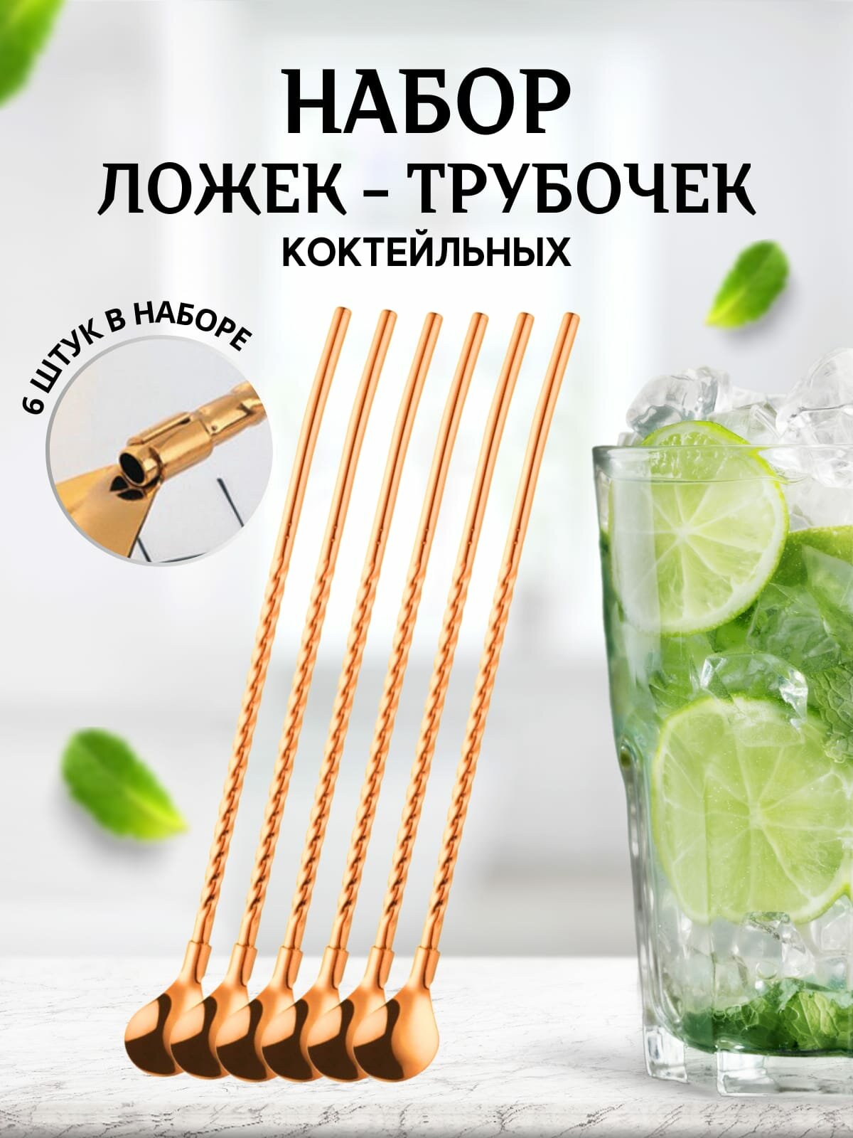 Набор коктейльных ложек-трубочек 6 шт Посуда для сервировки