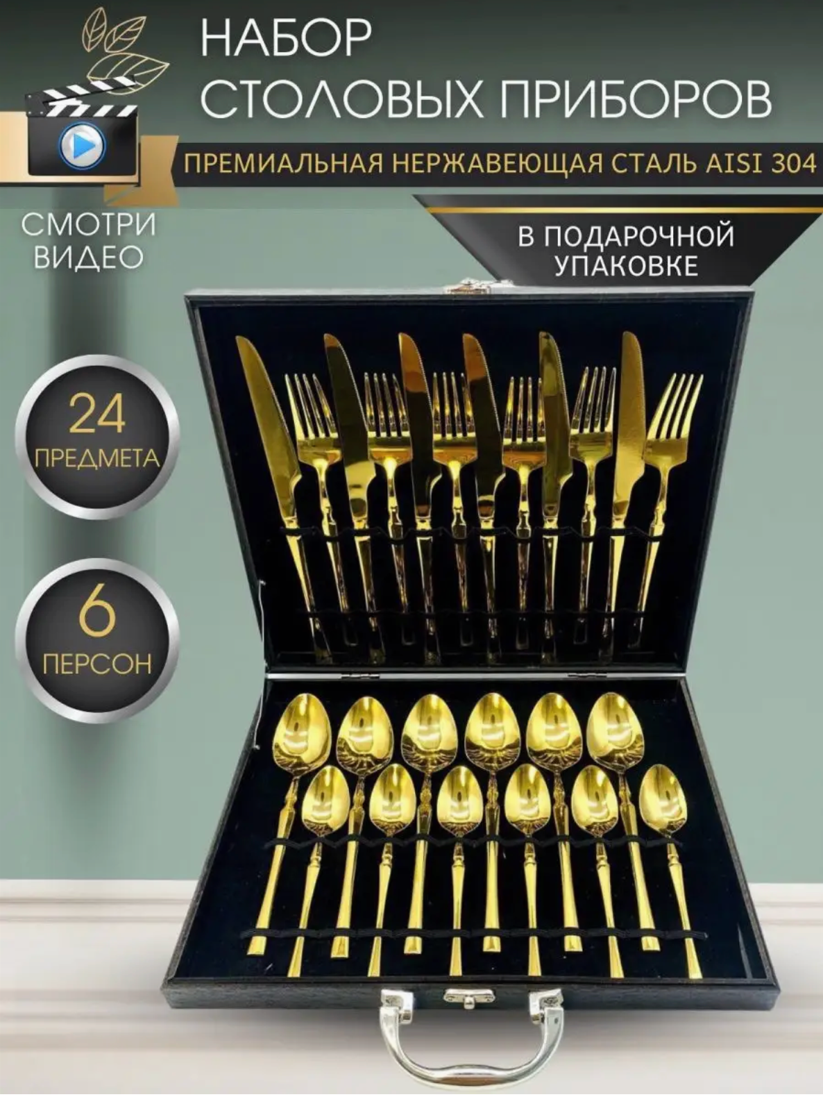 Набор столовых приборов 24 предмета , на 6 персон золотой .NEW интересное: