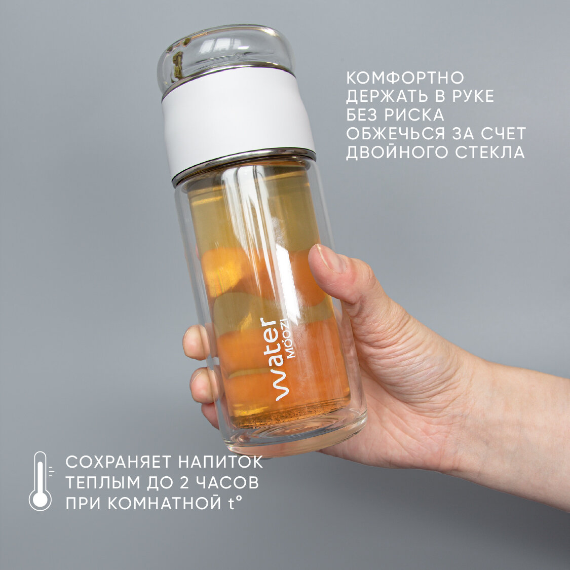 Купить Стеклянный термос Moozi для чая с заварником, цвет белый