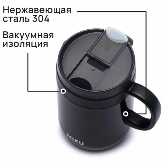 Термокружка с ручкой MIKU 500 мл (Черный) интересное: