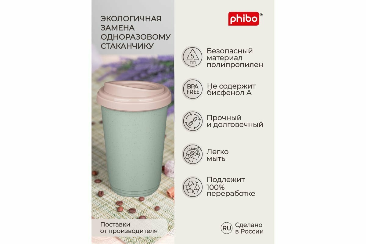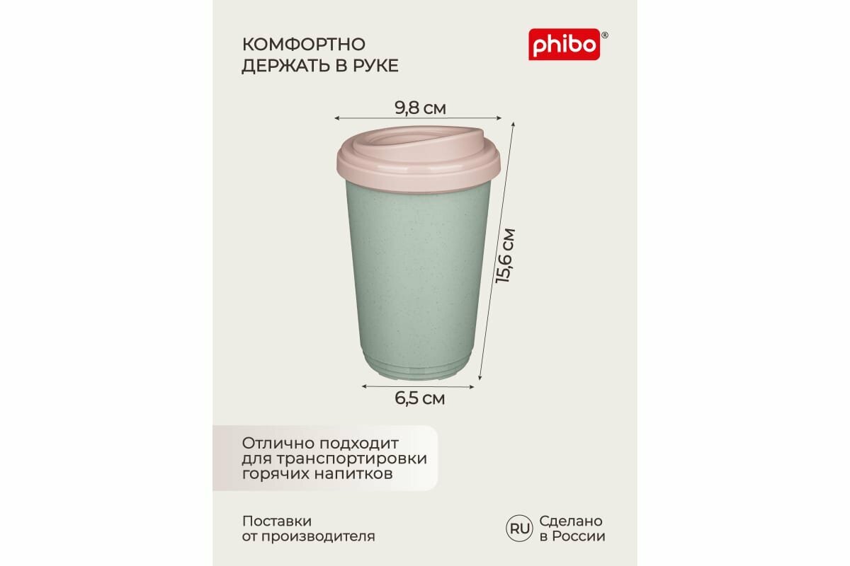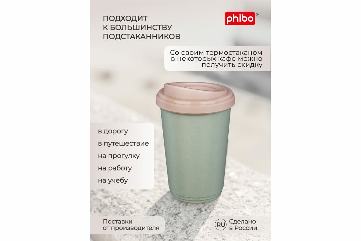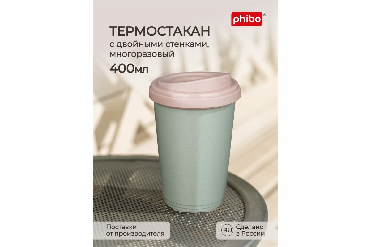 phibo Термостакан пластиковый, 400 мл, d=9,8 см, h=15,6 см, микс