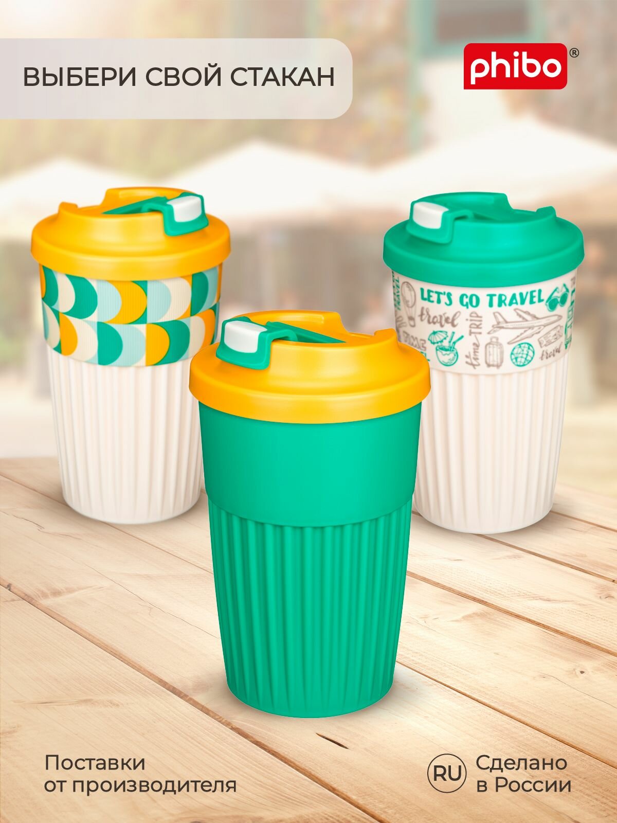 phibo Термостакан пластиковый, 400 мл, d=9,8 см, h=15,6 см, микс