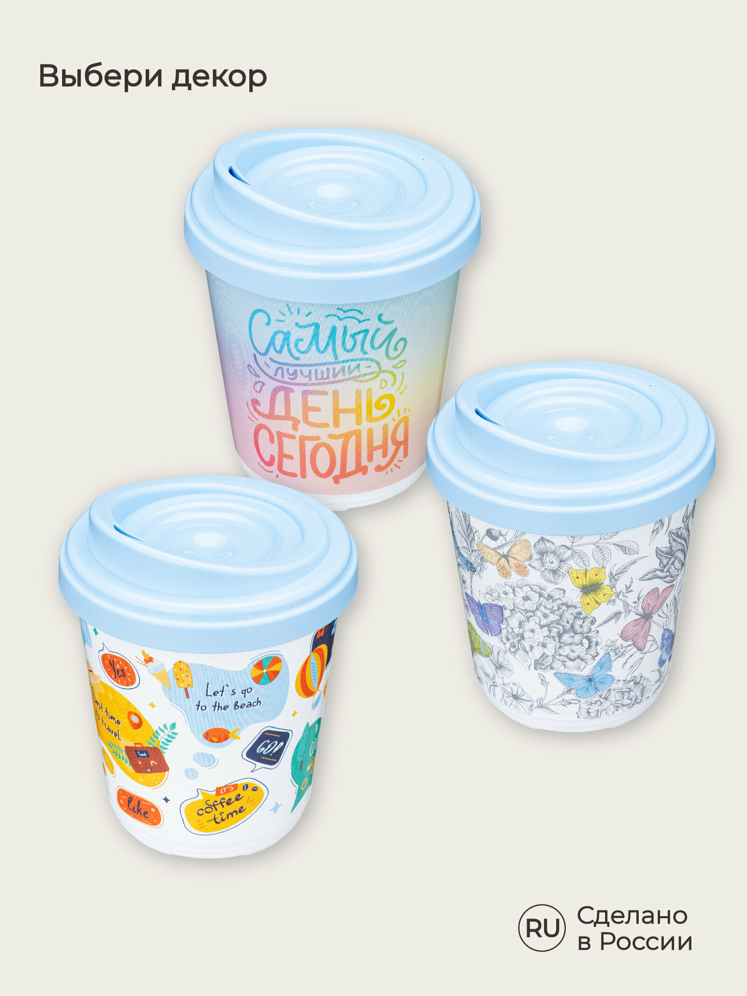 Термостакан с декором кофе 300 мл., светло-бежевый