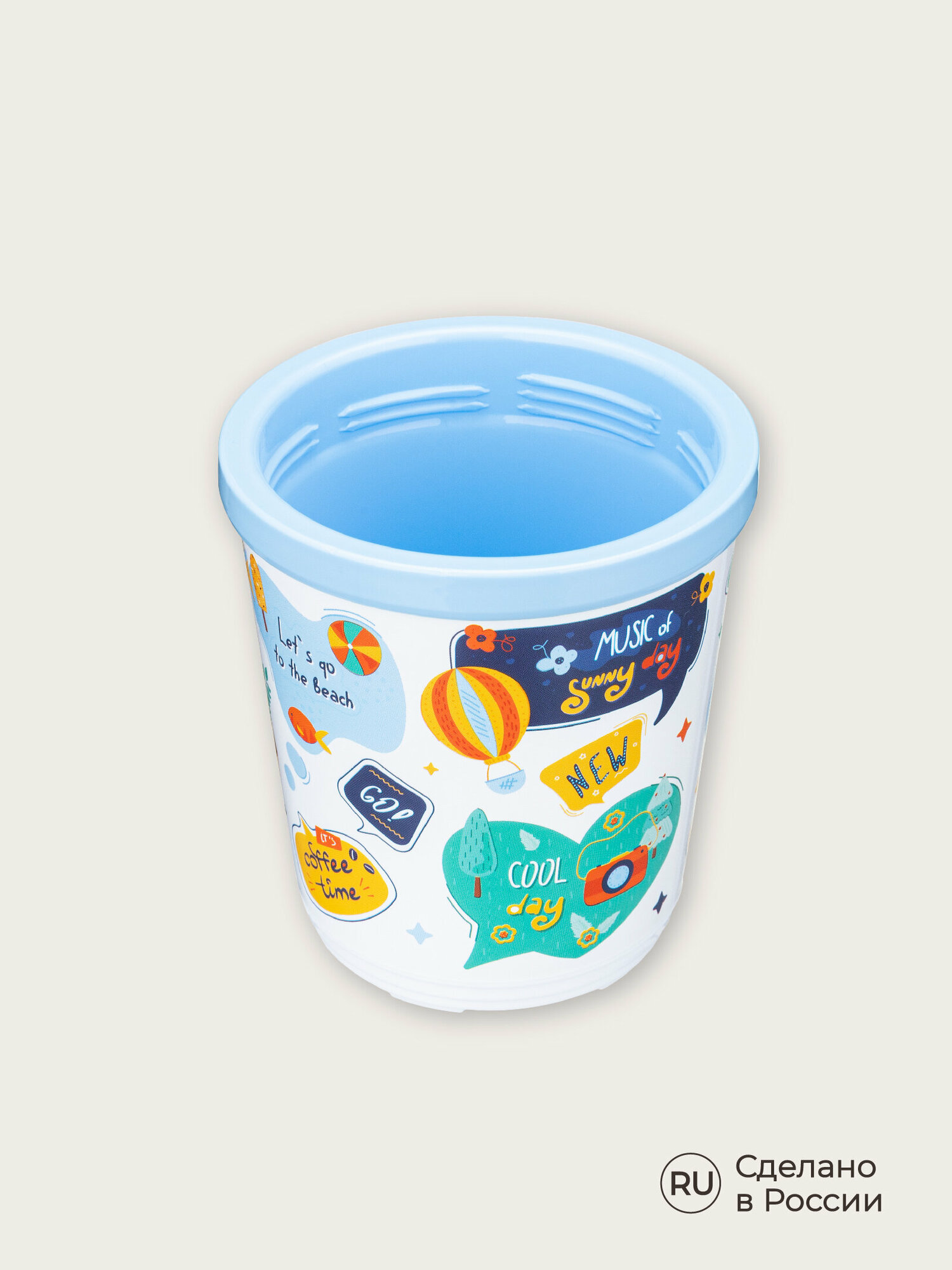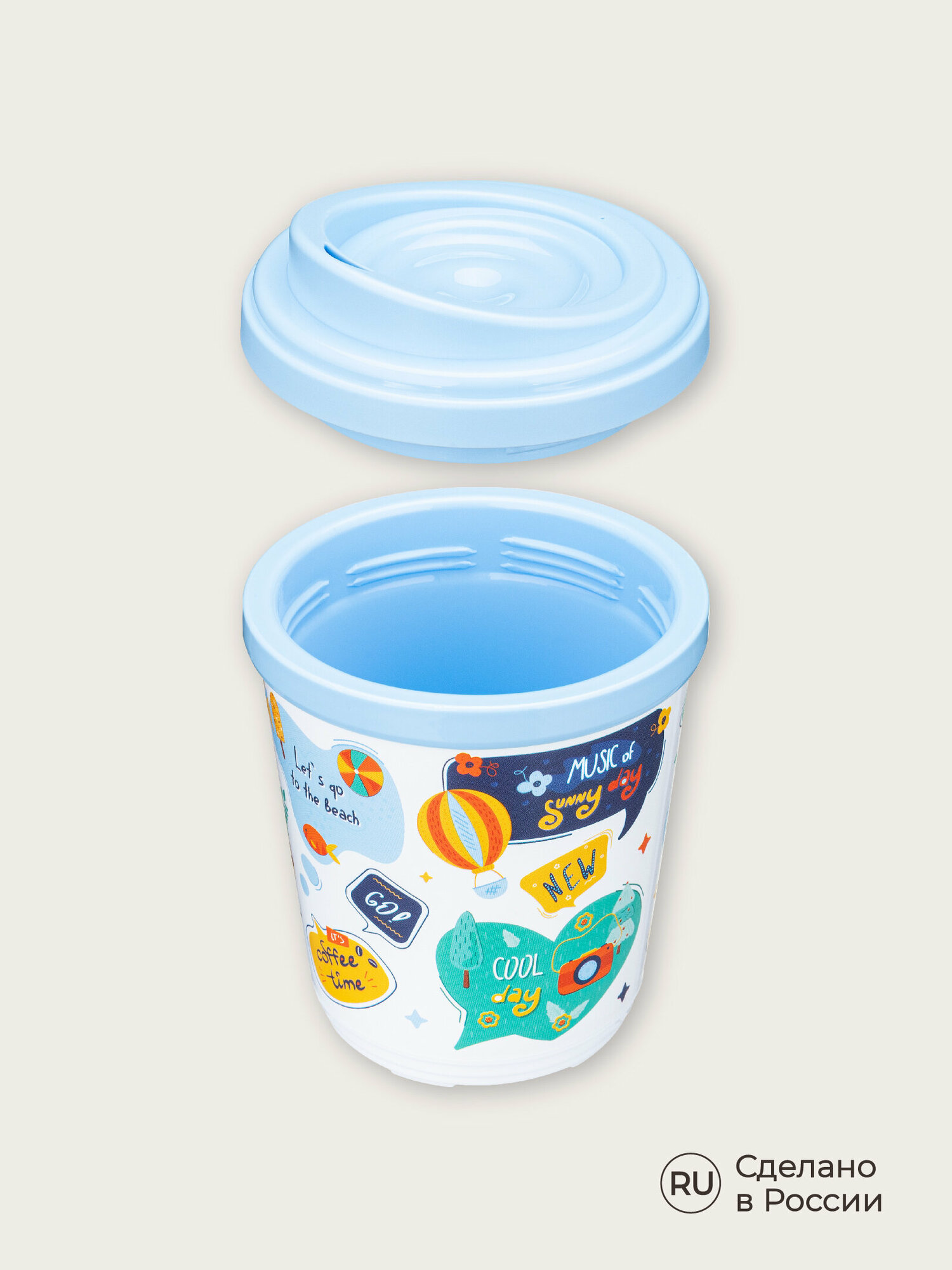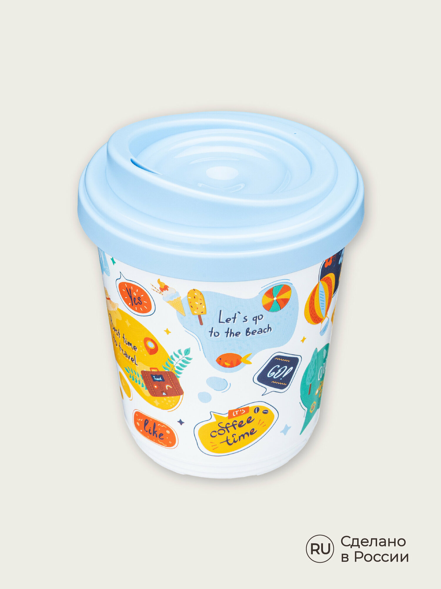 Термостакан для напитков, кофе, чая с декором "Стикеры", 300 мл, голубой