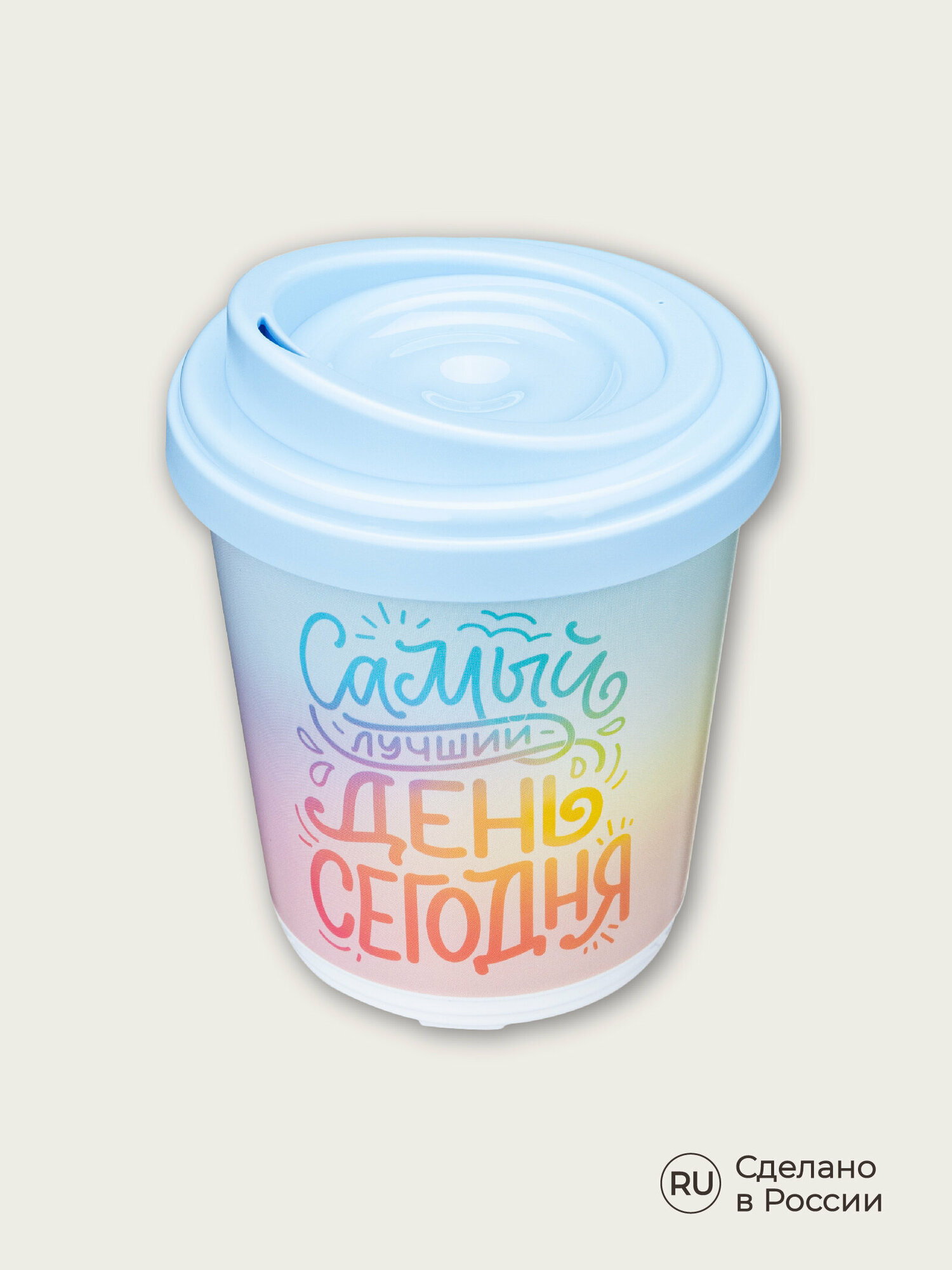 Купить Термостакан с декором Лучший день 300 мл, голубой