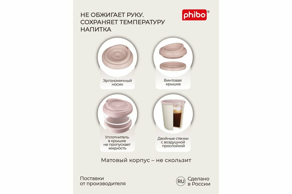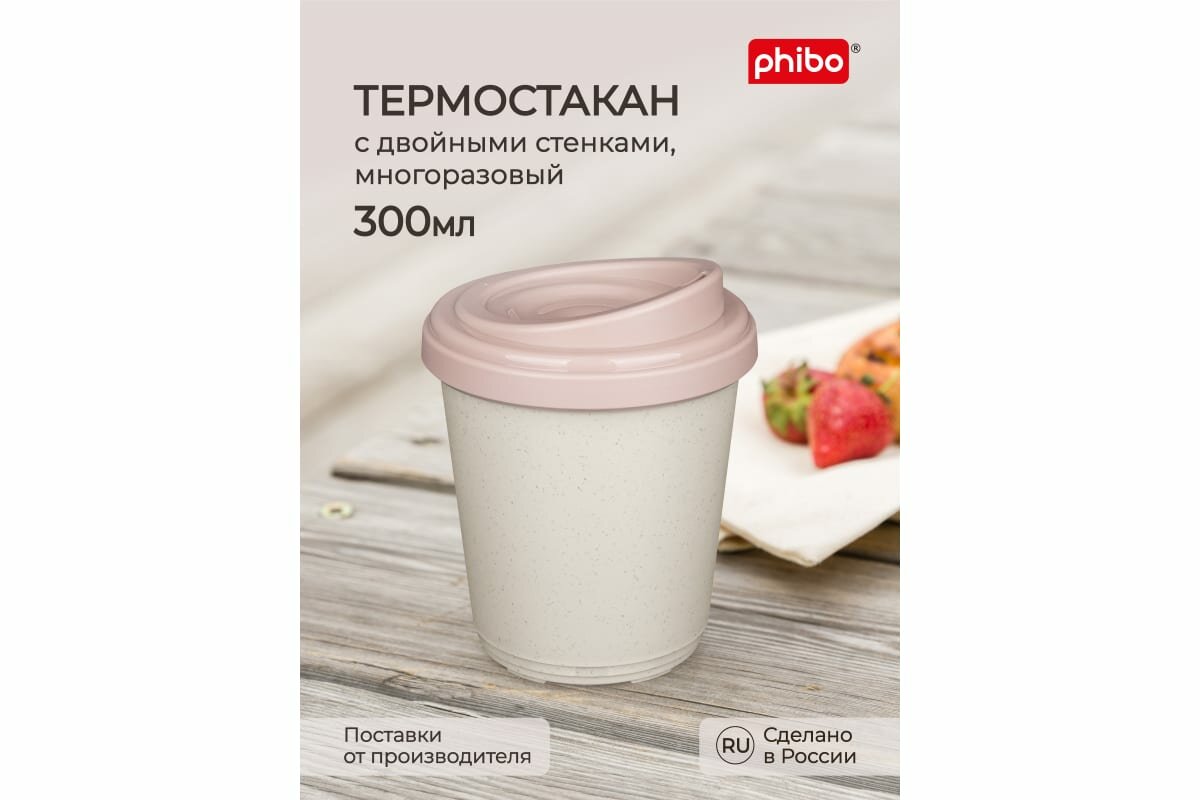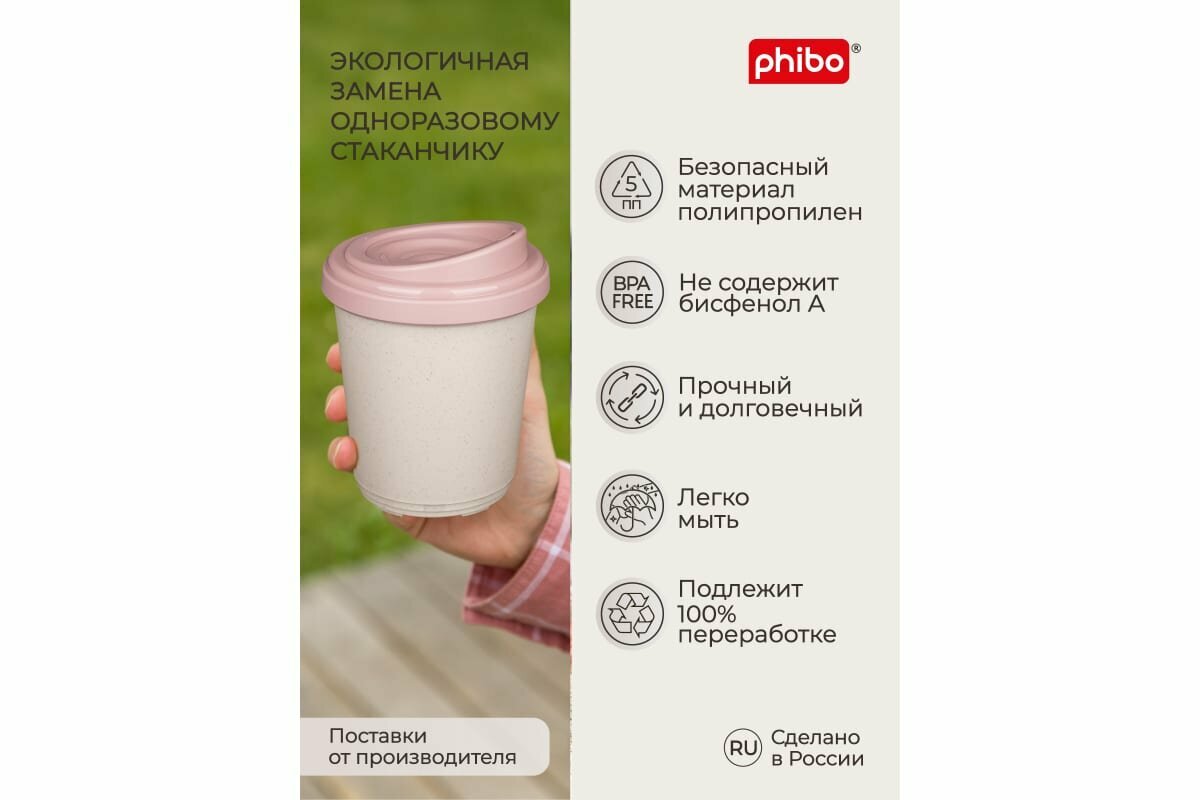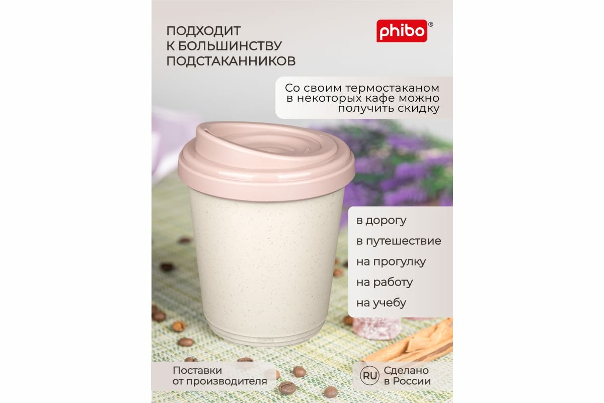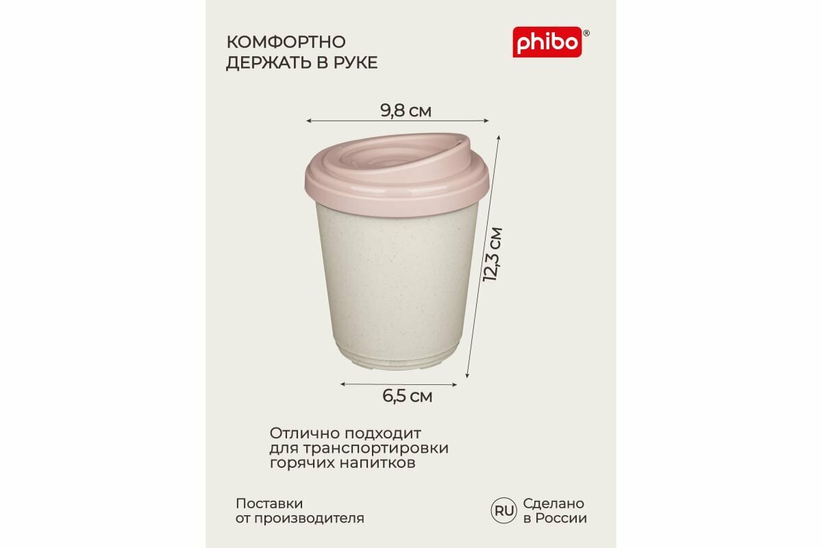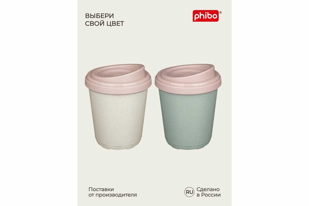 phibo Термостакан пластиковый, 400 мл, d=9,8 см, h=15,6 см, микс