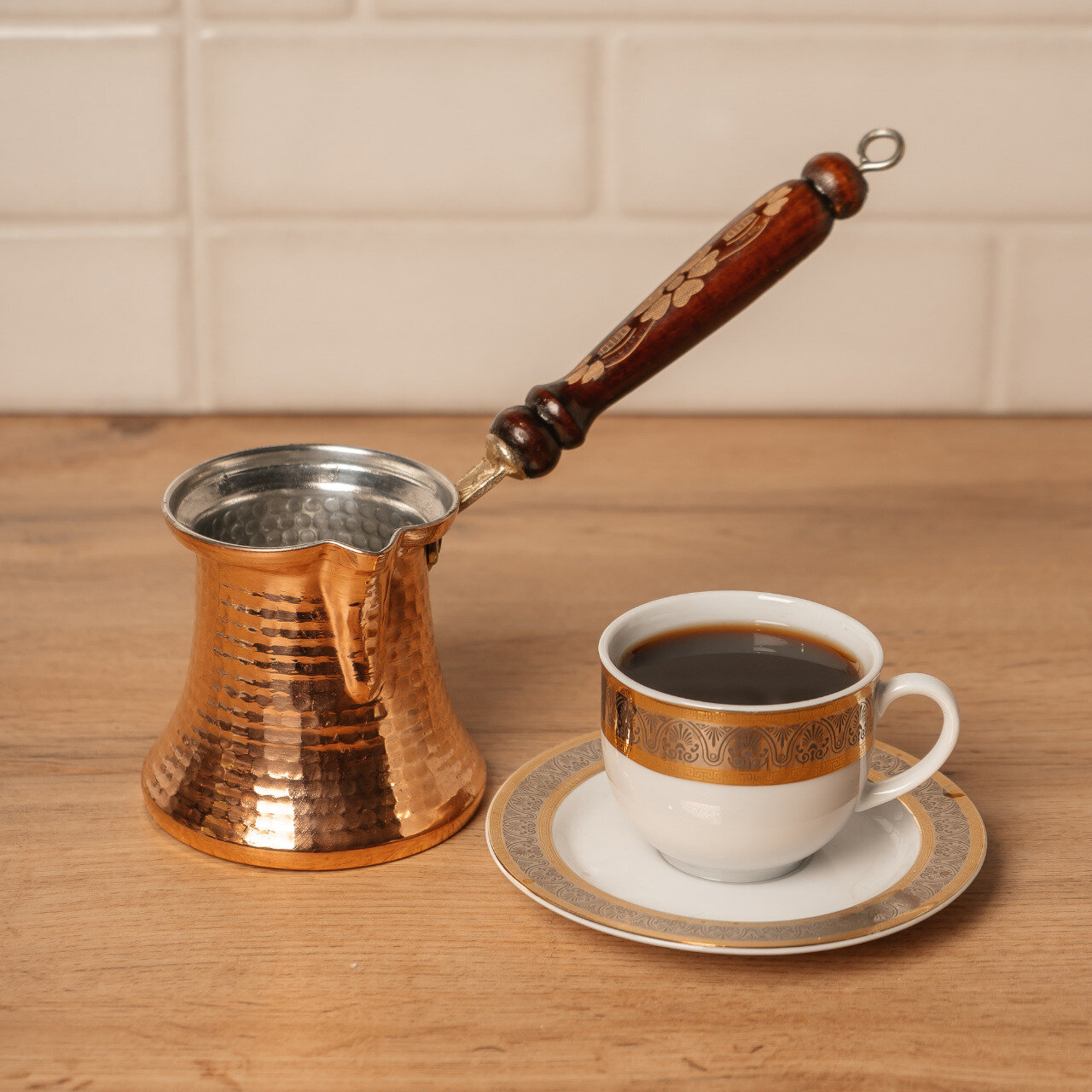 Купить Турка для кофе медная 400 мл (с деревянной ручкой), утолщённая медь