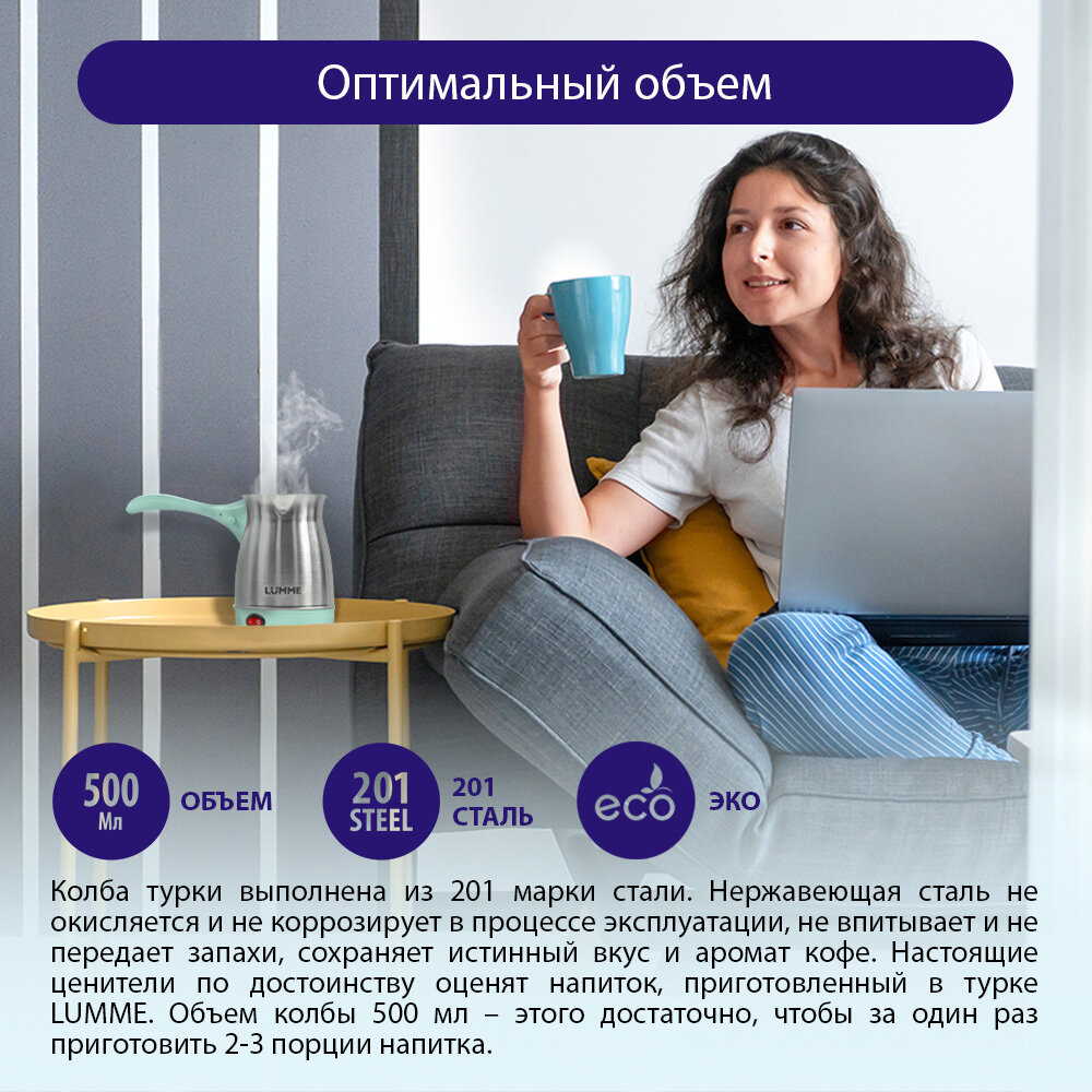 Электрическая турка LUMME LU-1633 ментол интересное: