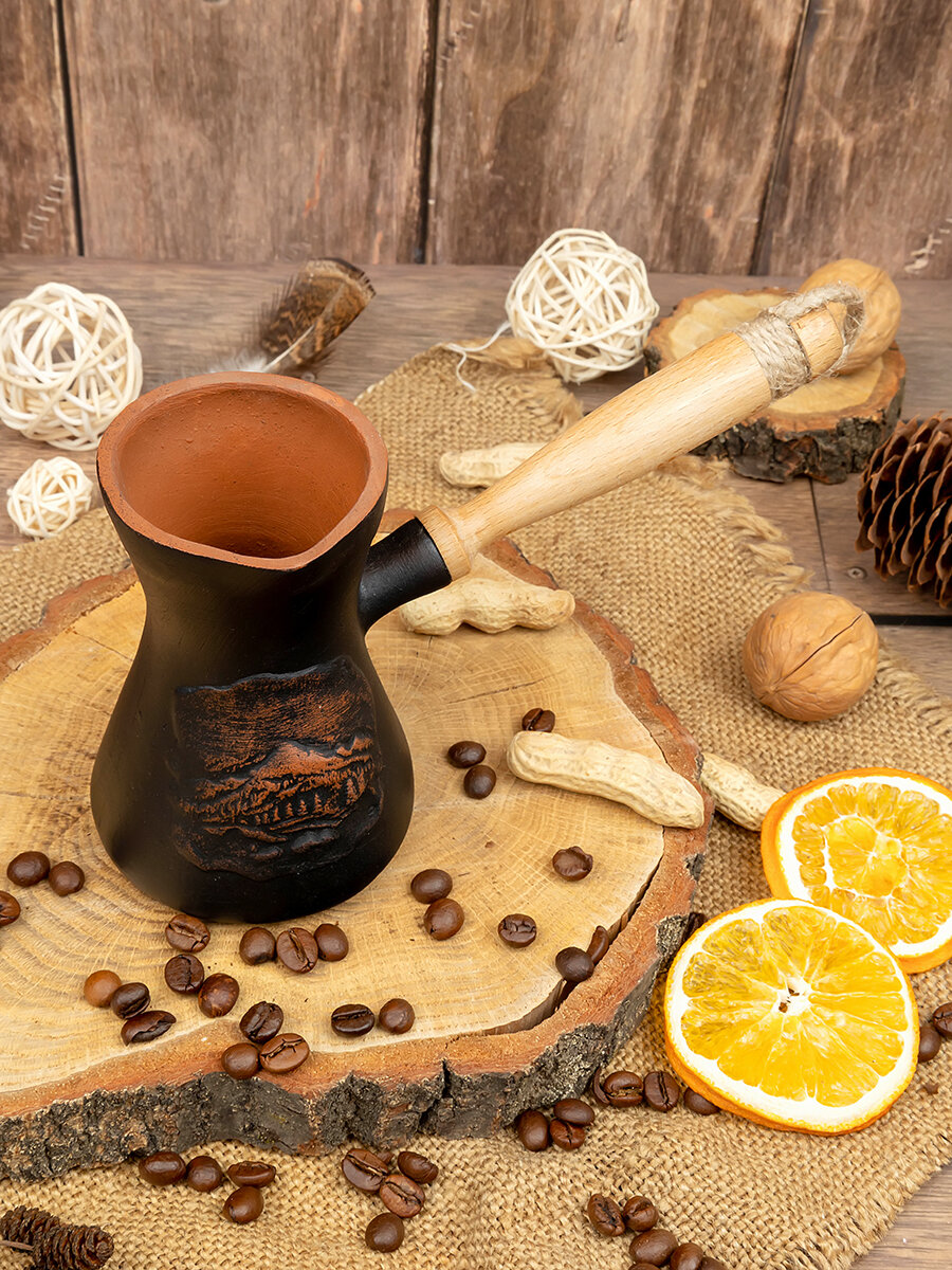 | Дополнительная информация | ВНИМАНИЕ! Турку для индукционной плиты использовать через переходник (адаптер), для газовой плиты - на медленном огне, используя рассекатель. Турка керамическая, глиняная с деревянной ручкой, джезва, кофеварка |