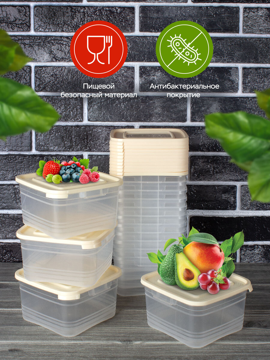 Набор пластиковых контейнеров для хранения и заморозки, Ангора, 1литр, 15 штук, кремовый интересное: