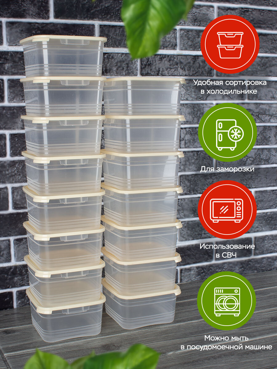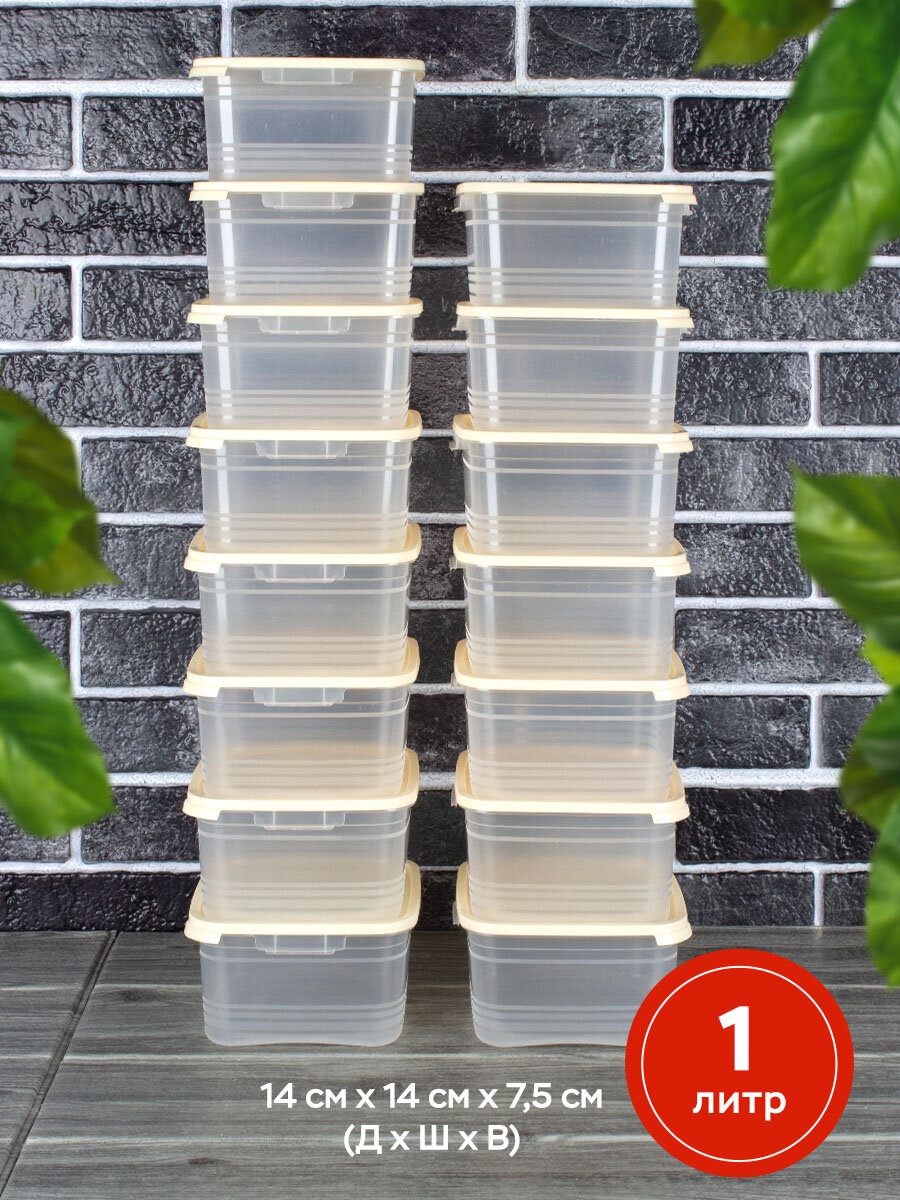 Купить Набор пластиковых контейнеров для хранения и заморозки, Ангора, 1литр, 15 штук, кремовый
