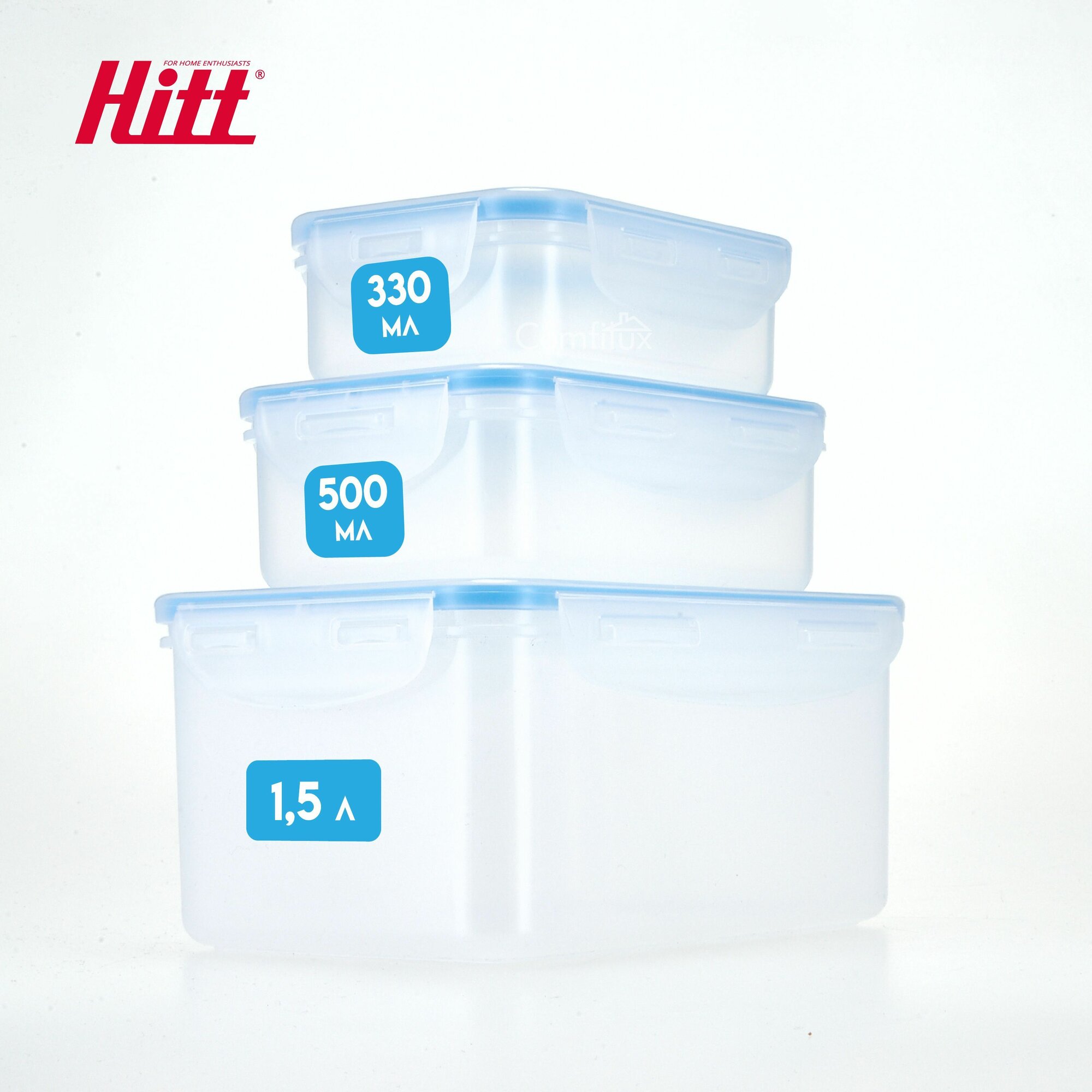 Контейнеры для еды и хранения продуктов Hitt, 3 штуки, герметичные, пластиковые: 0.47 л, 0.77 л, 1.4 л