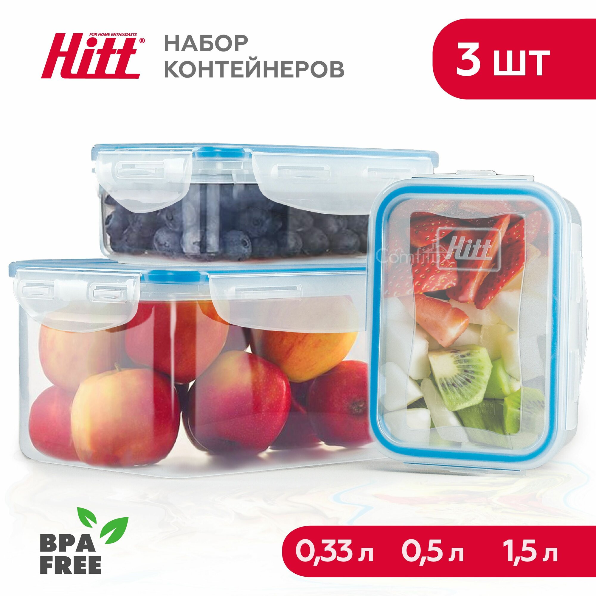 Купить Набор контейнеров 3 штуки Hitt, герметичные, для еды, для хранения и заморозки продуктов: 0.33 л, 0.5 л, 1.5 л