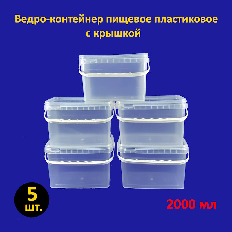 Ведро прямоугольное пластиковое 2 л с крышкой, 5 шт. интересное: