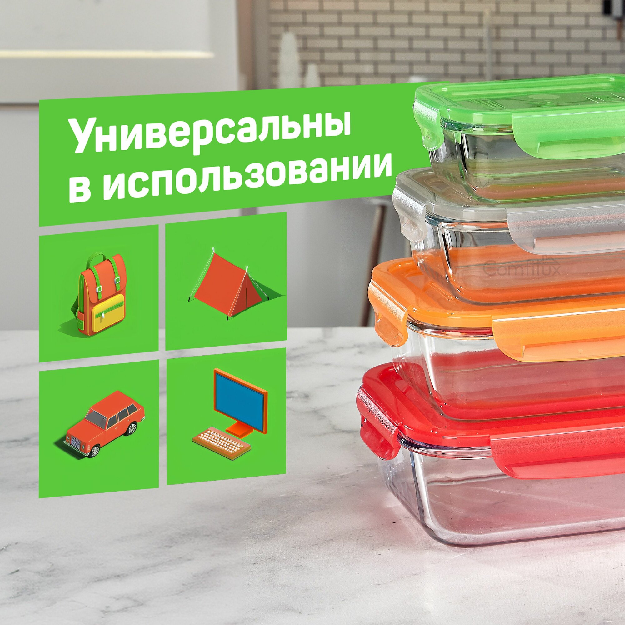 Контейнеры для еды Hitt герметичные, стеклянные, жаропрочные, с крышкой 370 мл, 630 мл, 1 л, 1.5 л, набор 4 шт интересное:
