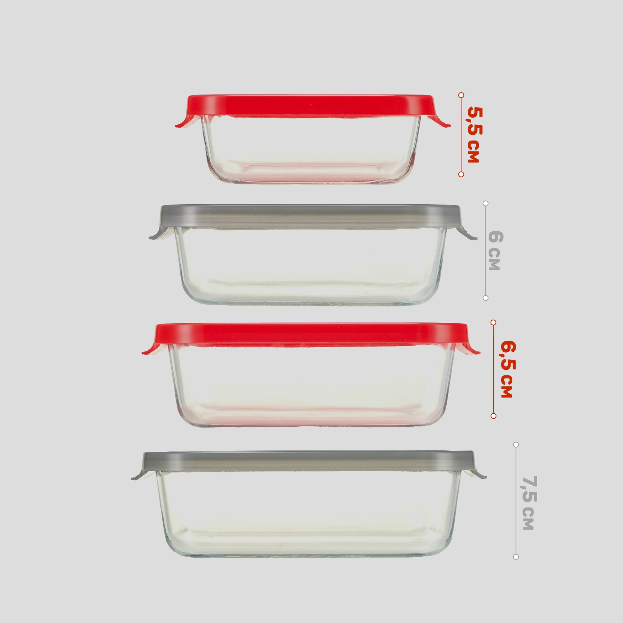Купить Контейнеры для еды Hitt стеклянные, жаропрочные, с крышкой 370 мл, 630 мл, 1 л, 1.5 л, набор 4 шт
