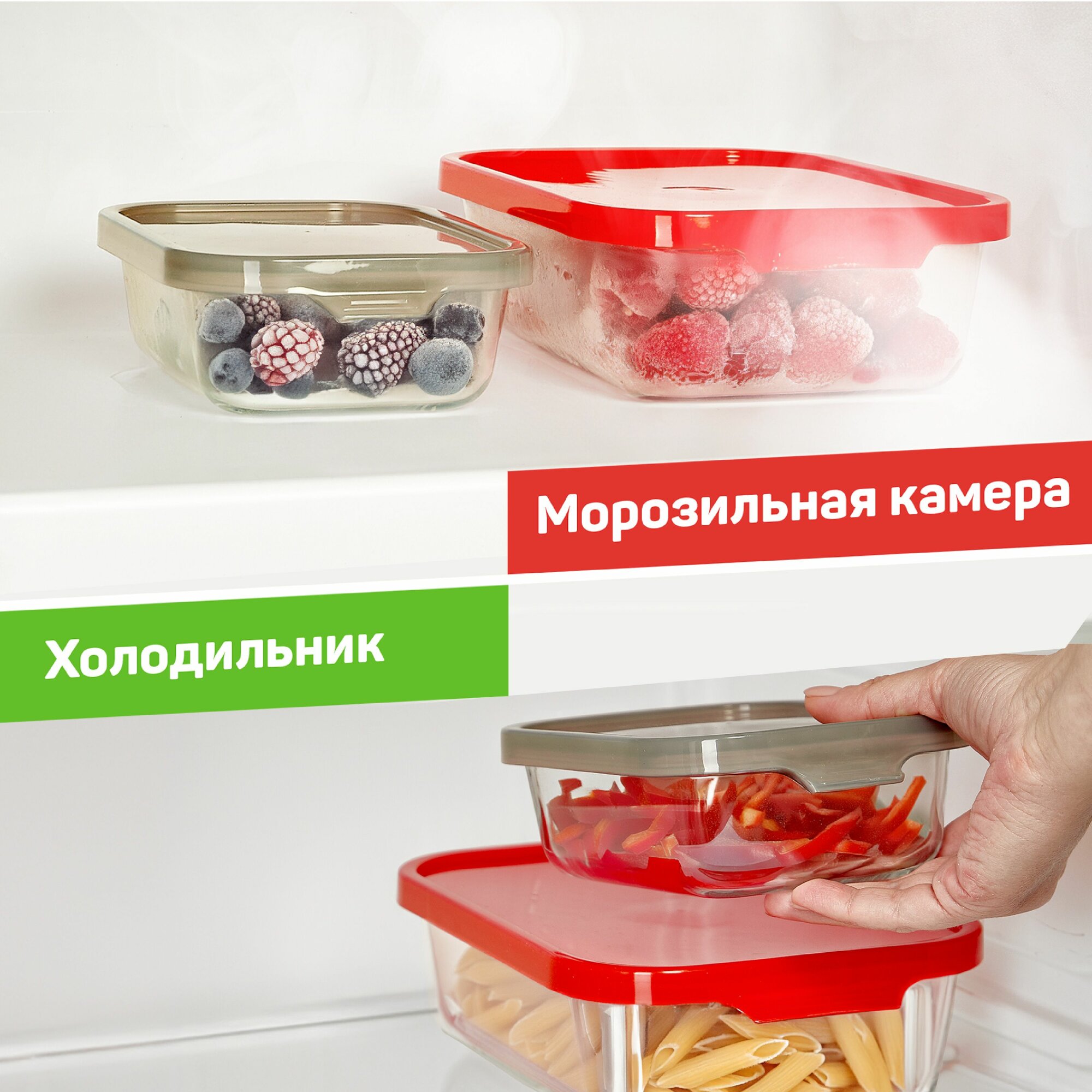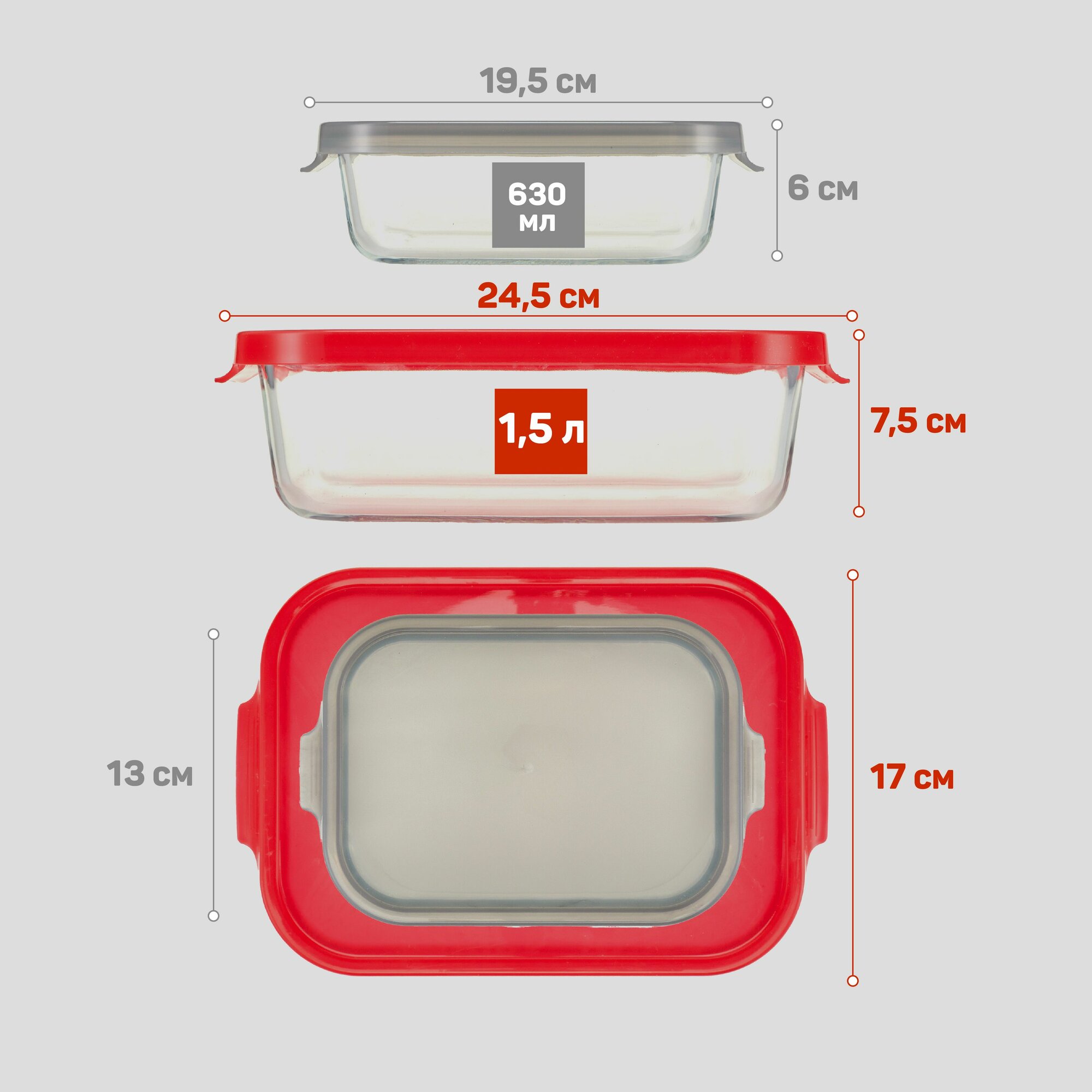 Купить Контейнеры для еды Hitt стеклянные, жаропрочные, с крышкой 630 мл, 1.5 л, набор 2 шт