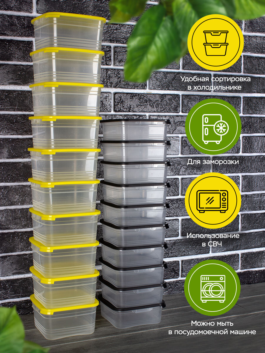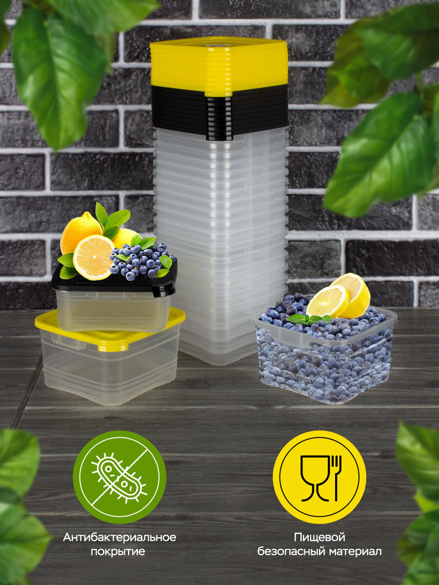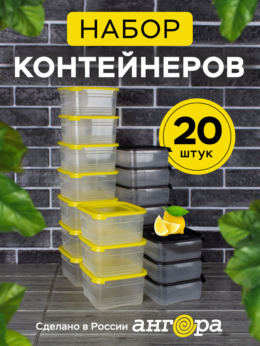 Контейнер для еды и хранения продуктов 20шт Ангора 0,7л+1л набор контейнеров 0,7 л + 1 л, желтый/черный интересное: