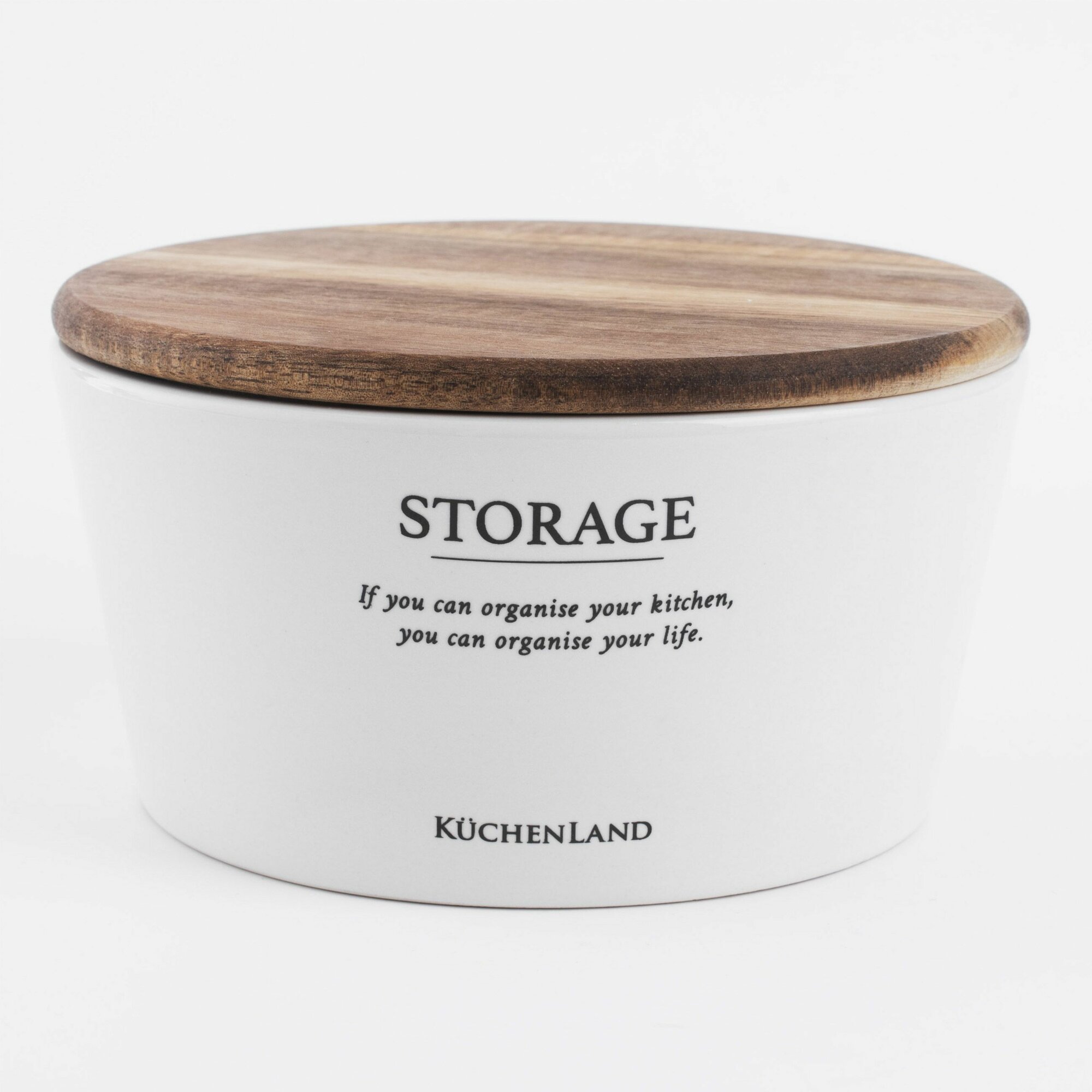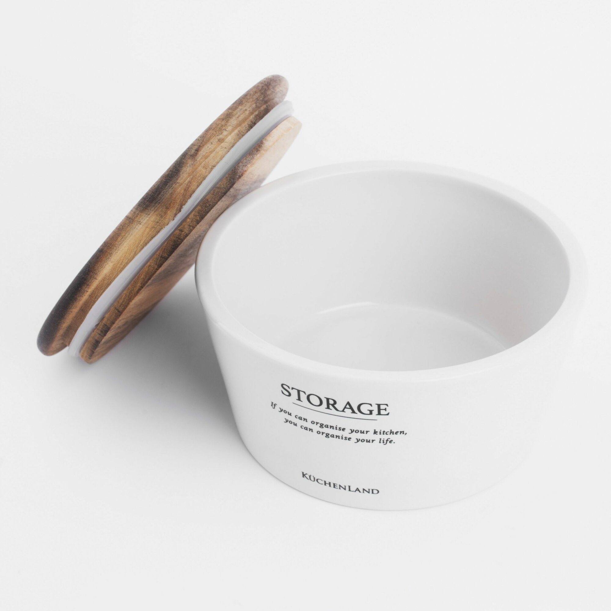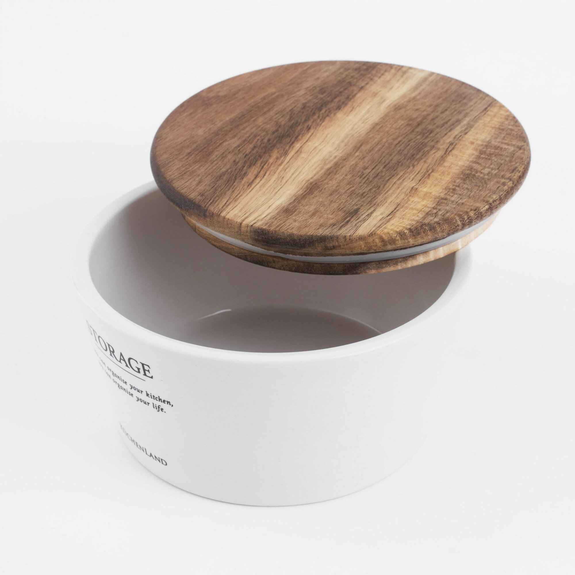 Емкость для хранения, 14x7 см, 560 мл, керамика/дерево, белая, Course интересное: