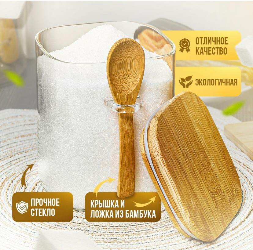 Банка для хранения стеклянная 800 мл, с бамбуковой крышкой интересное: