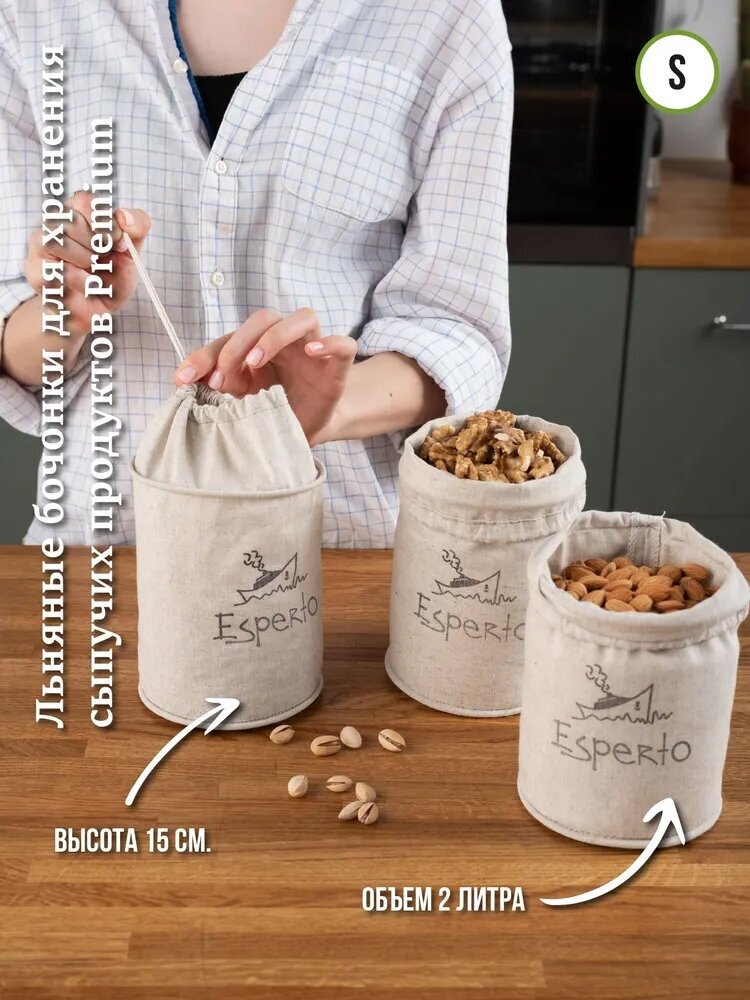 Комплект мешочков / емкостей для хранения продуктов (орехов, крупы, сахара...), 3 шт., размер L