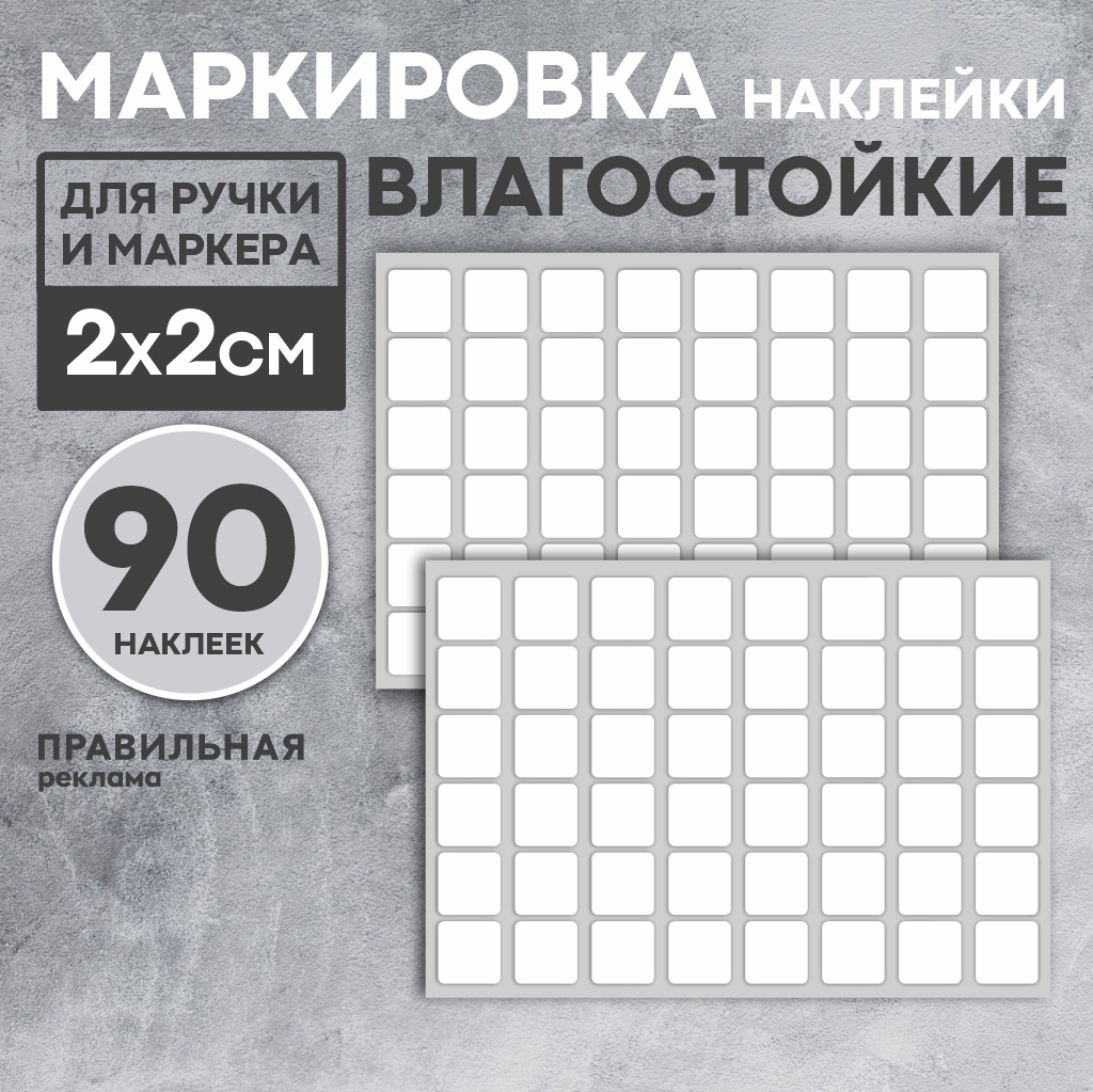 Наклейки для самостоятельной маркировки контейнеров, коробок, банок; 90шт 2х2 см квадратные. Этикетки белые матовые, влагостойкие интересное:
