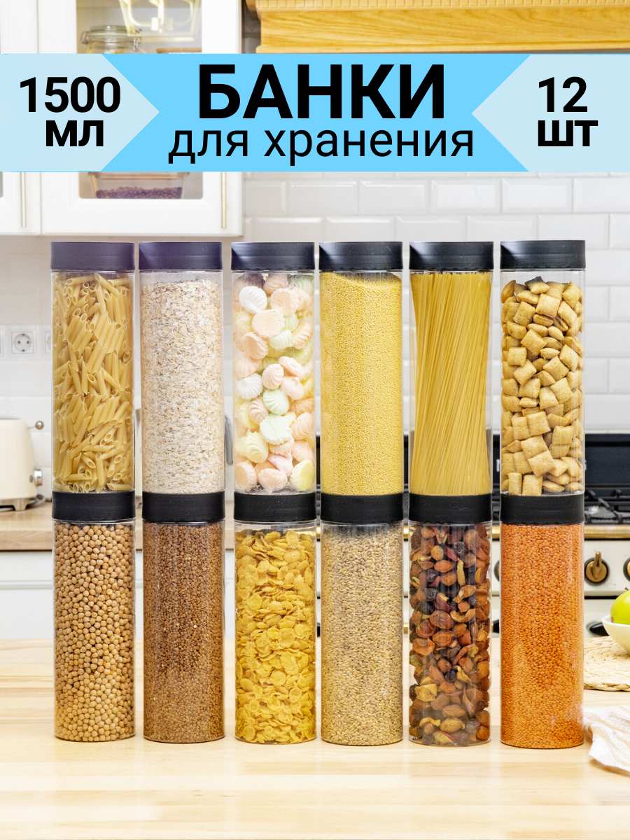 СохранитьБанки для хранения сыпучих продуктов 1,5 л., 12 шт., пластиковые, прозрачные интересное: