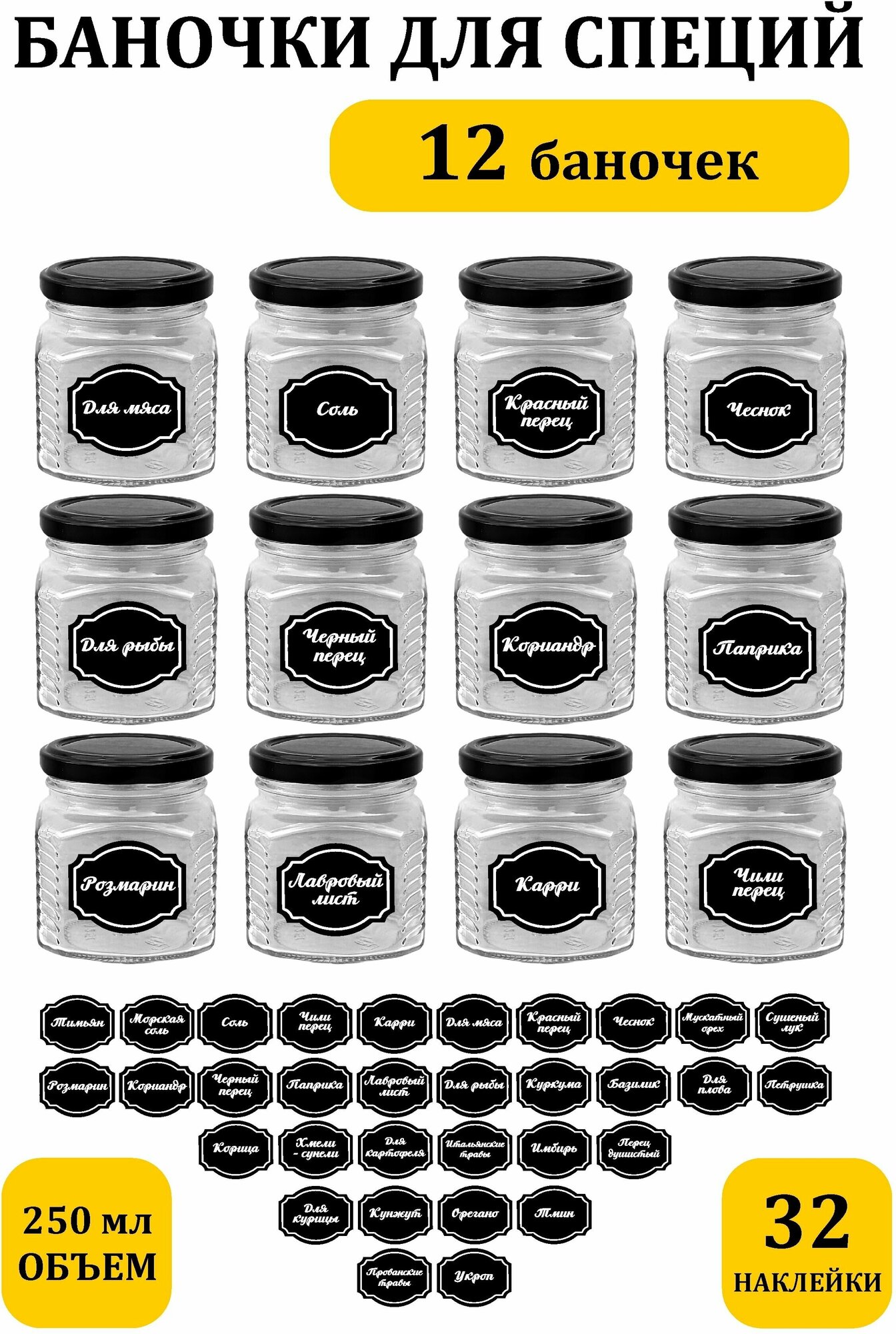 Емкость для сыпучих продуктов баночки стеклянные 12шт + 32 наклейки интересное: