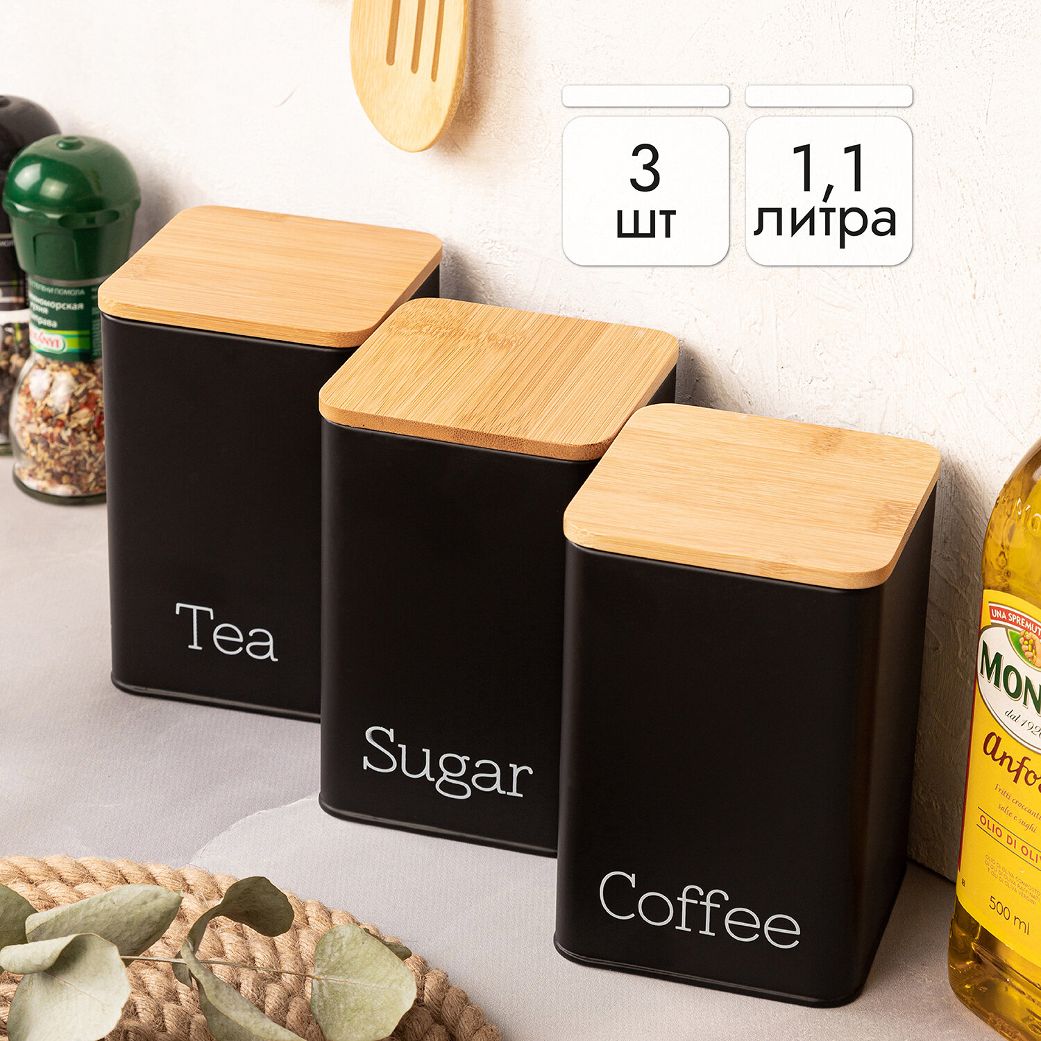 | Комплектация | металлическая банка 3 шт., бамбуковая крышка 3 шт. |