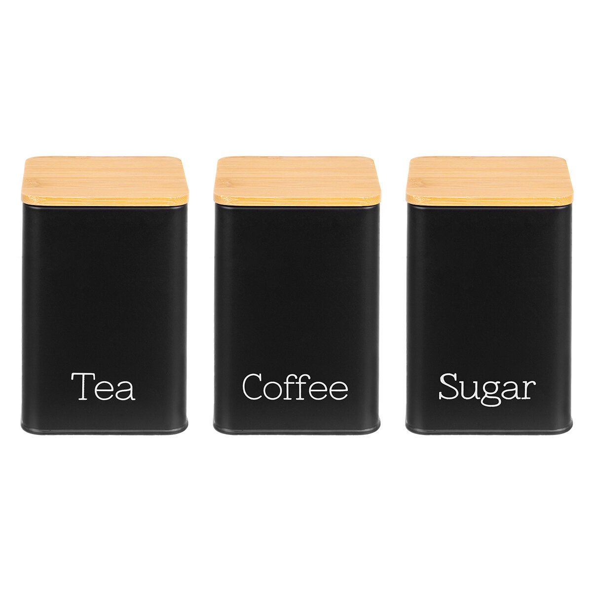 | Дополнительная информация | Набор 3 банок для сыпучих продуктов "Чай, кофе, сахар" 9,5х9,5х14,5 см 1,1 л - каждая, черный, высота без крышки 14 см, с бамбук.крышками, |