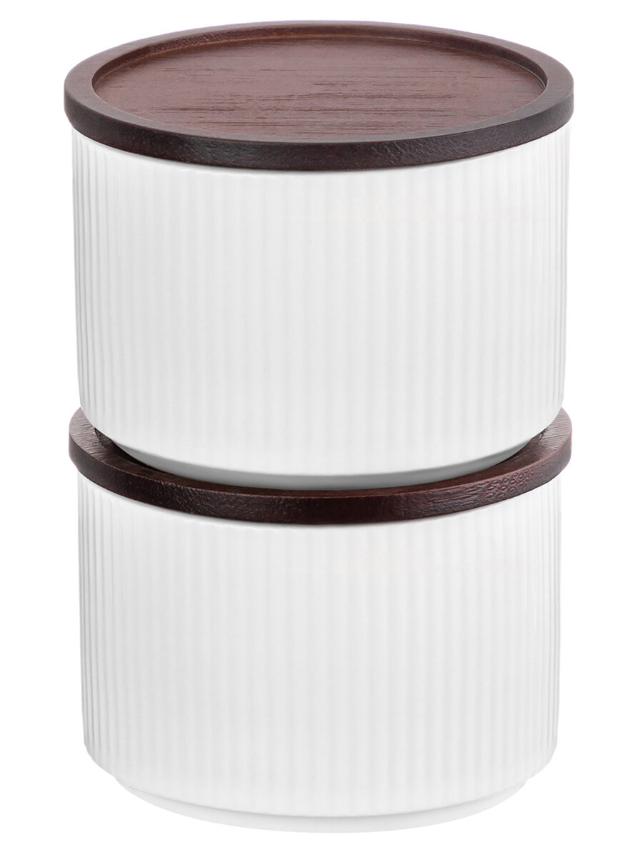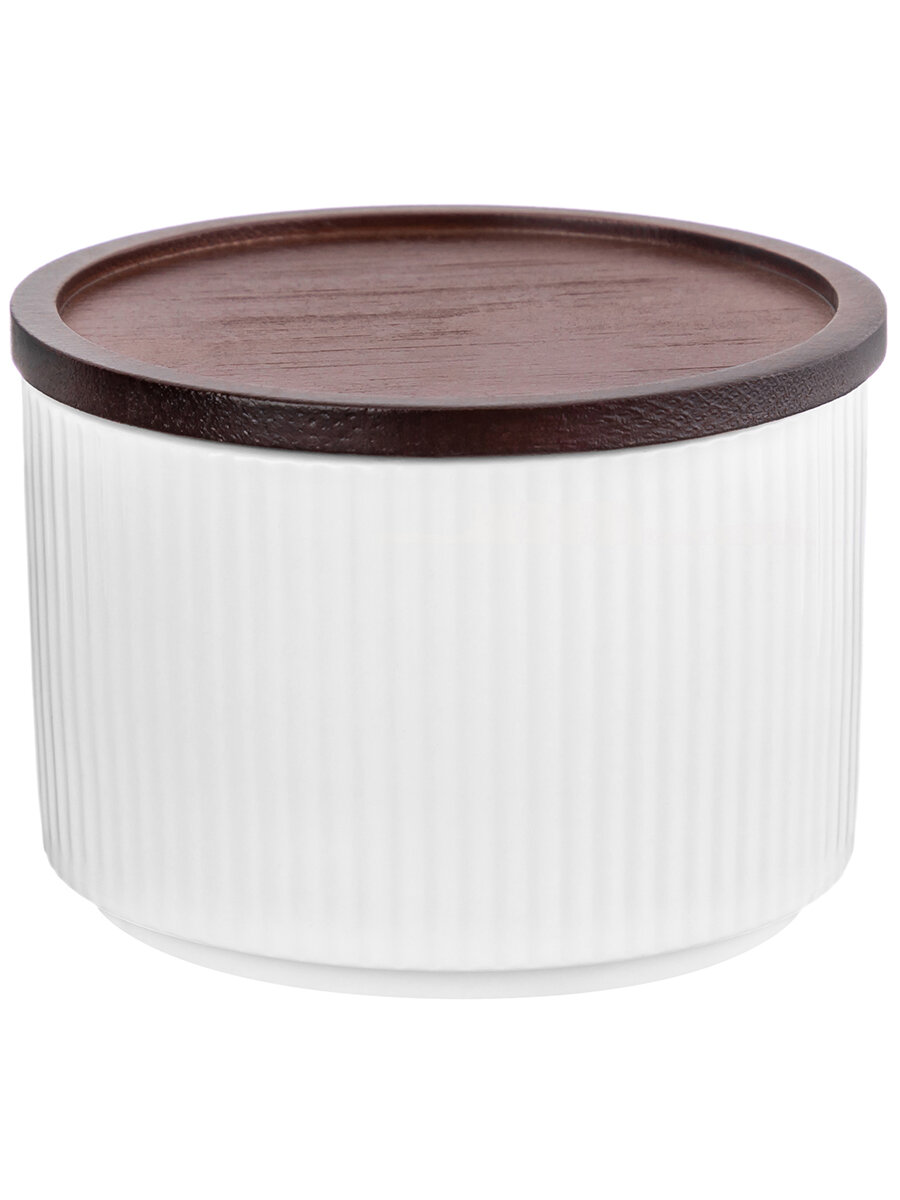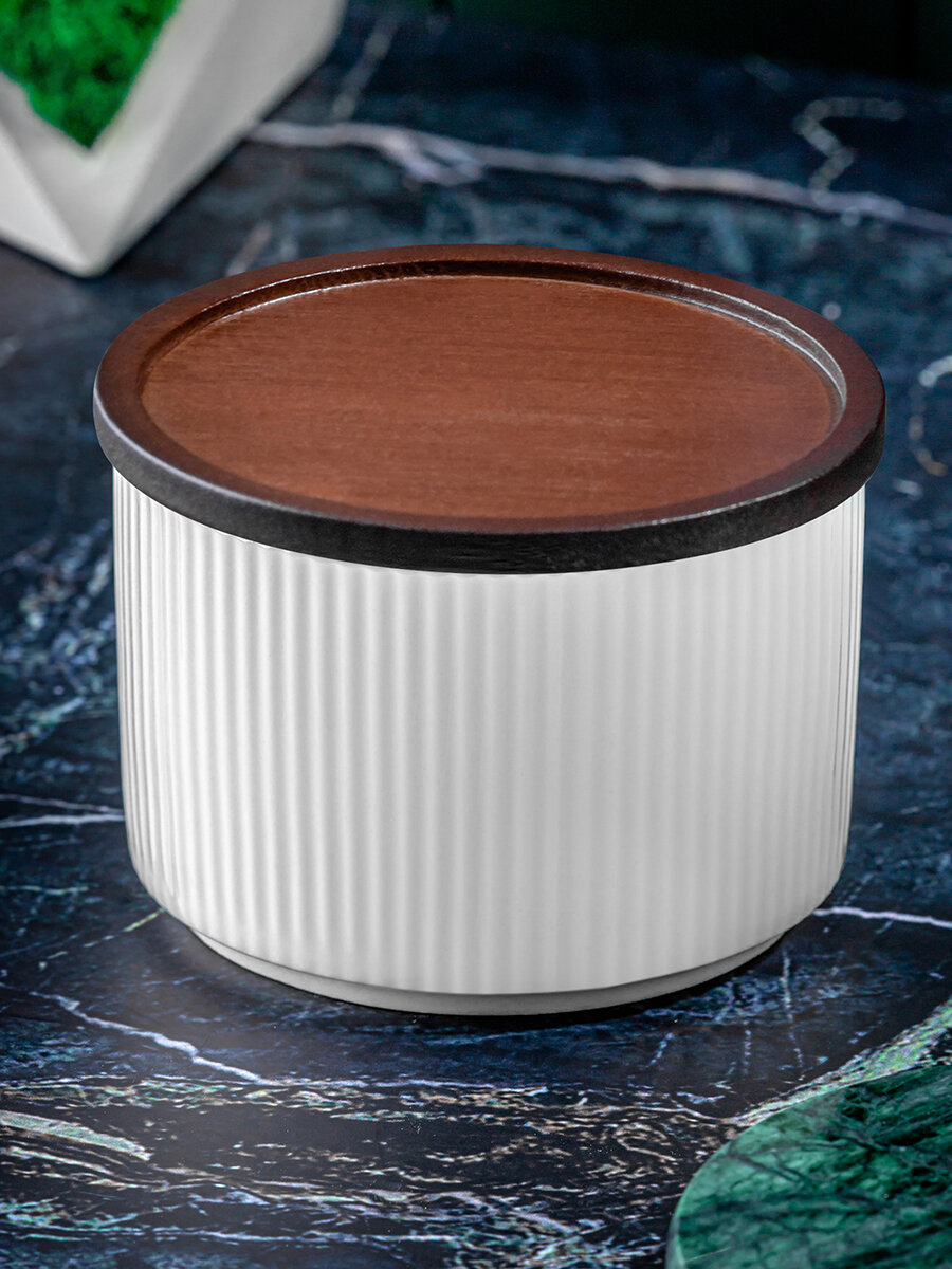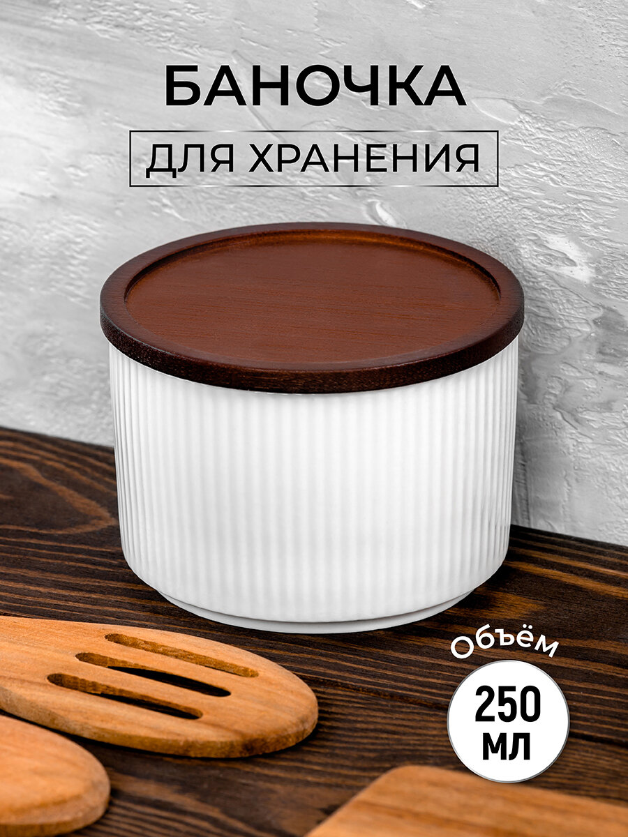 Банка для хранения / форма для запекания 250 мл Elan Gallery Полоски, Колоранс, белая, с деревянной крышкой-подставкой с сил. упл. интересное: