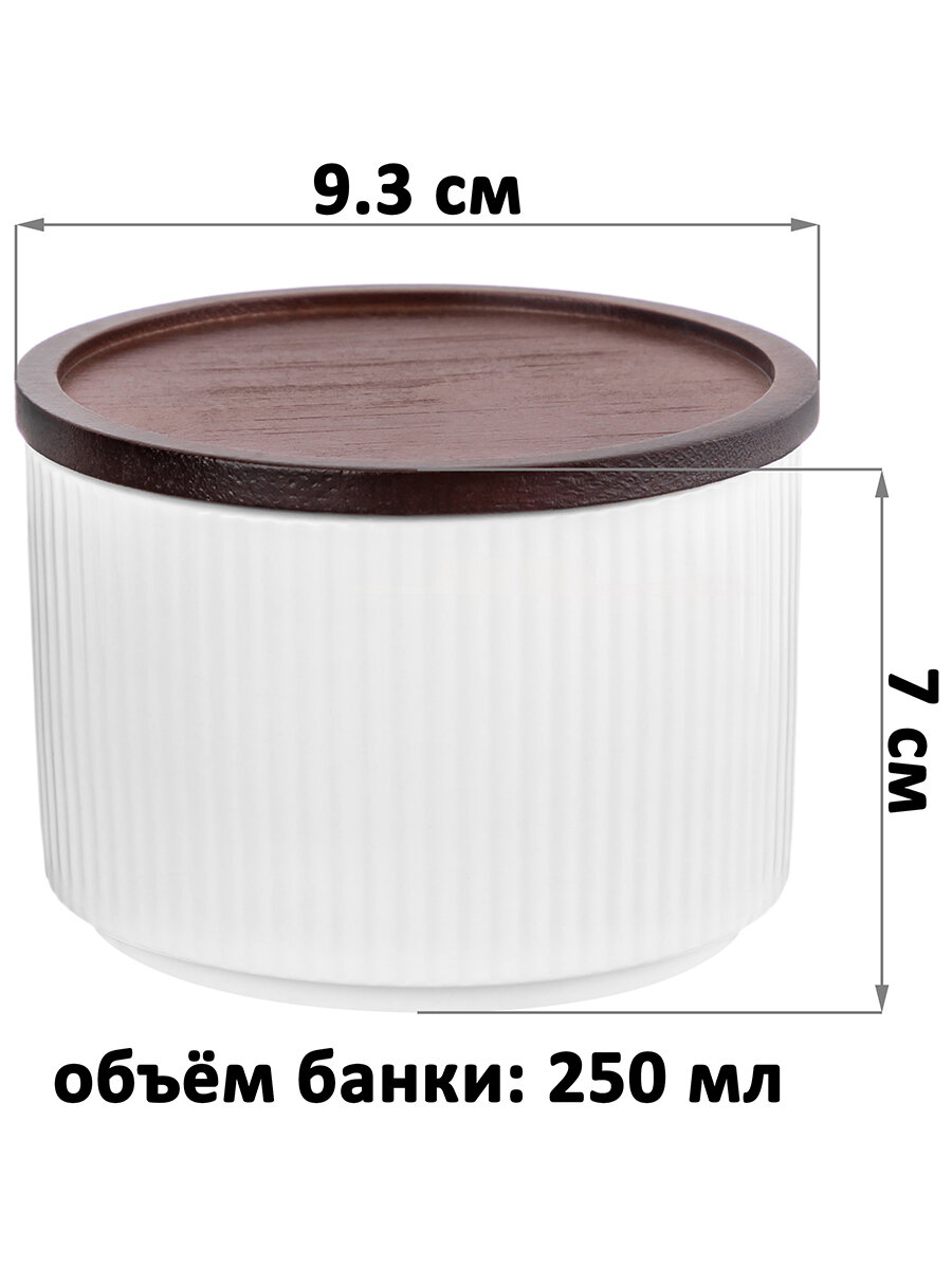 | Дополнительная информация | Банка для хранения "Колоранс - Полоски" белая, 9,3х9,3х7 см, 250 мл, с деревянной крышкой-подставкой с силиконовым уплотнителем, высота без крышки - 6 см |